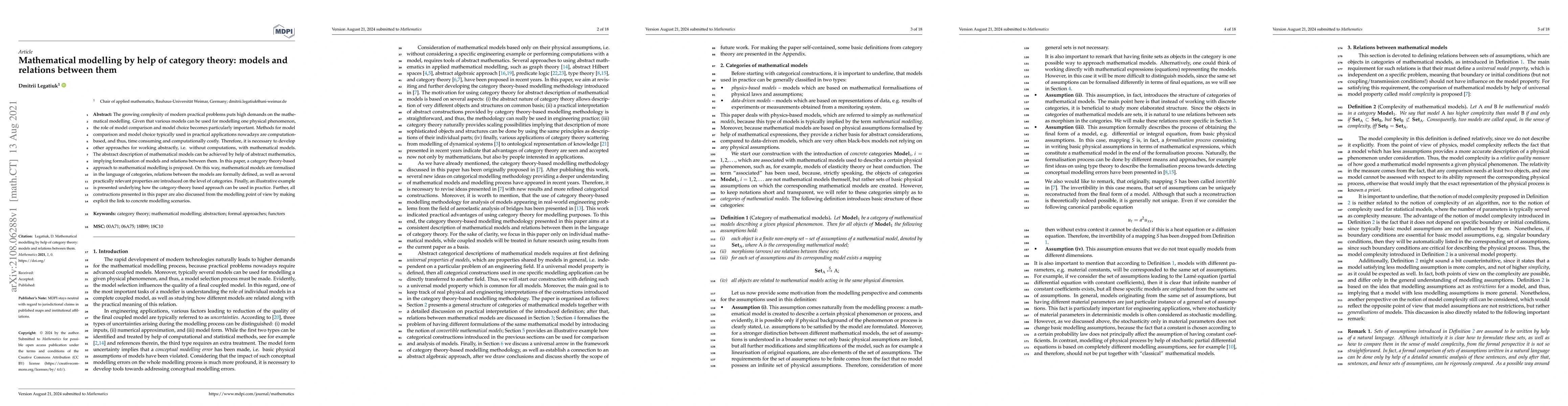 A category theory-based approach is proposed for mathematical modelling, formalising models in a language of categories to facilitate model comparison and choice without computational costs.
