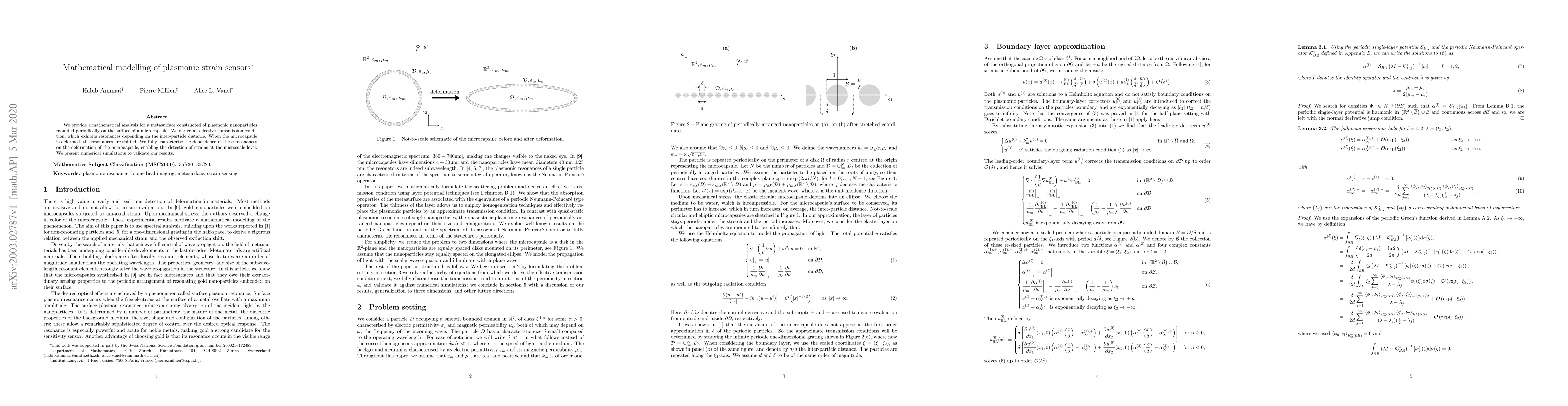 We provide a mathematical analysis for a metasurface constructed of plasmonic nanoparticles mounted periodically on the surface of a microcapsule. We derive an effective transmission condition, which exhibits resonances depending on the inter-particle distance. When the microcapsule is deformed, the resonances are shifted. We fully characterise the dependence of these resonances on the deformation of the microcapsule, enabling the detection of strains at the microscale level. We present numerical simulations to validate our results.