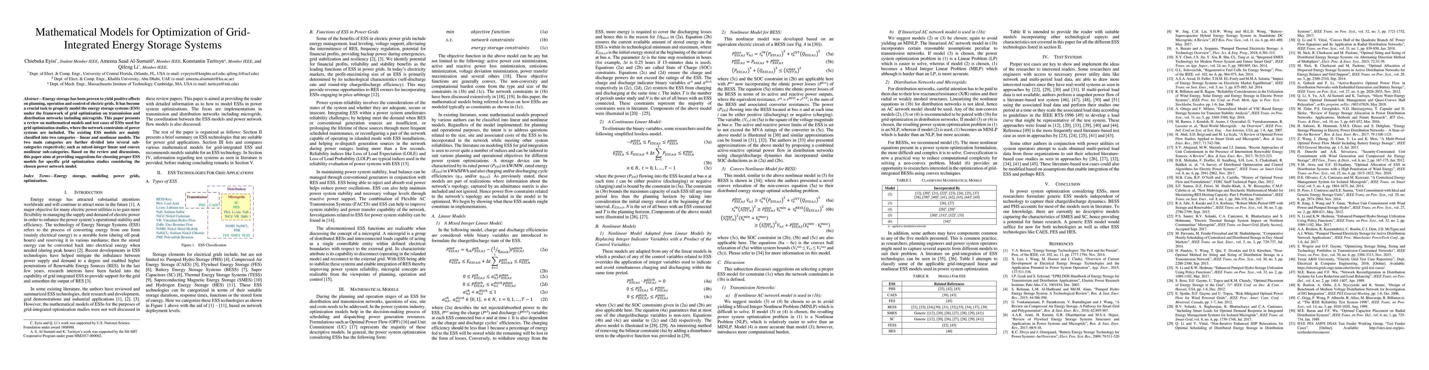 This paper reviews mathematical models for optimizing grid-integrated energy storage systems (ESS), categorizing them into linear and nonlinear models. It provides recommendations for selecting appropriate ESS models based on the specific power network context for grid optimization studies.