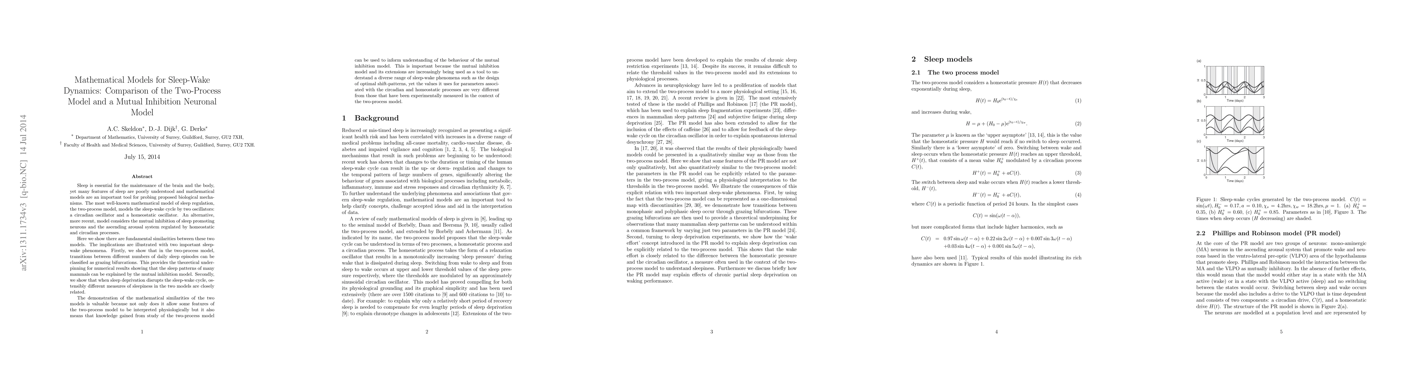 This paper compares two mathematical models of sleep-wake dynamics: the well-known two-process model and a newer mutual inhibition neuronal model. It demonstrates fundamental similarities between the two, showing that both can explain phenomena like grazing bifurcations and the effects of sleep deprivation on sleepiness.