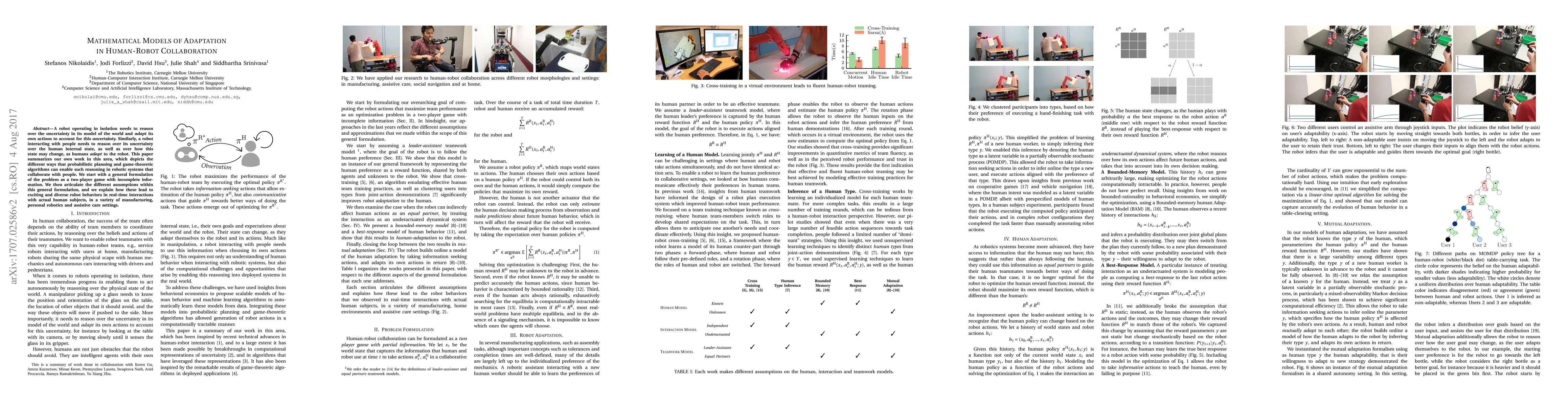 This paper explores how robots can adapt to uncertainty in human-robot collaboration using probabilistic planning and game-theoretic algorithms. It showcases diverse robot behaviors in various settings through real-time interactions with humans.