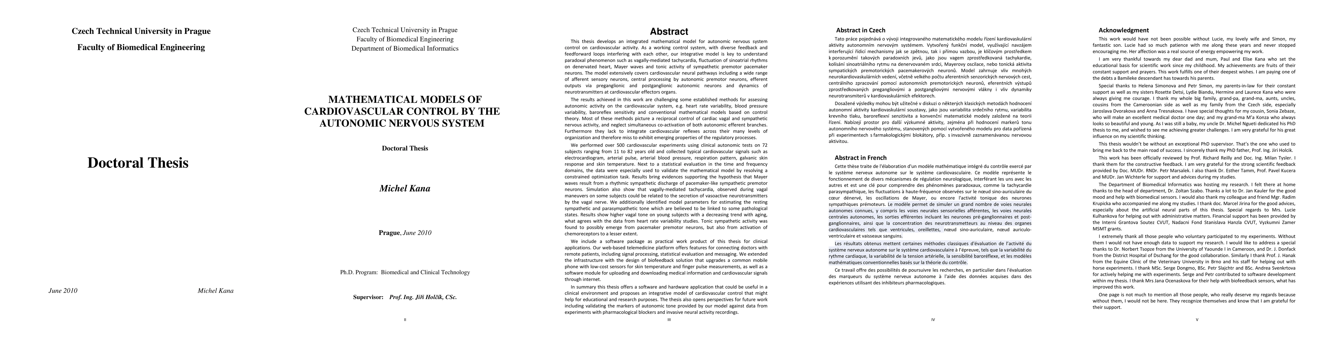This PhD thesis develops a comprehensive mathematical model of autonomic nervous system control over cardiovascular activity, integrating neural pathways and neurotransmitter dynamics. Experimental data from 72 subjects support the model, revealing insights into sympathetic and parasympathetic tones and their relation to age, with implications for pathological states.