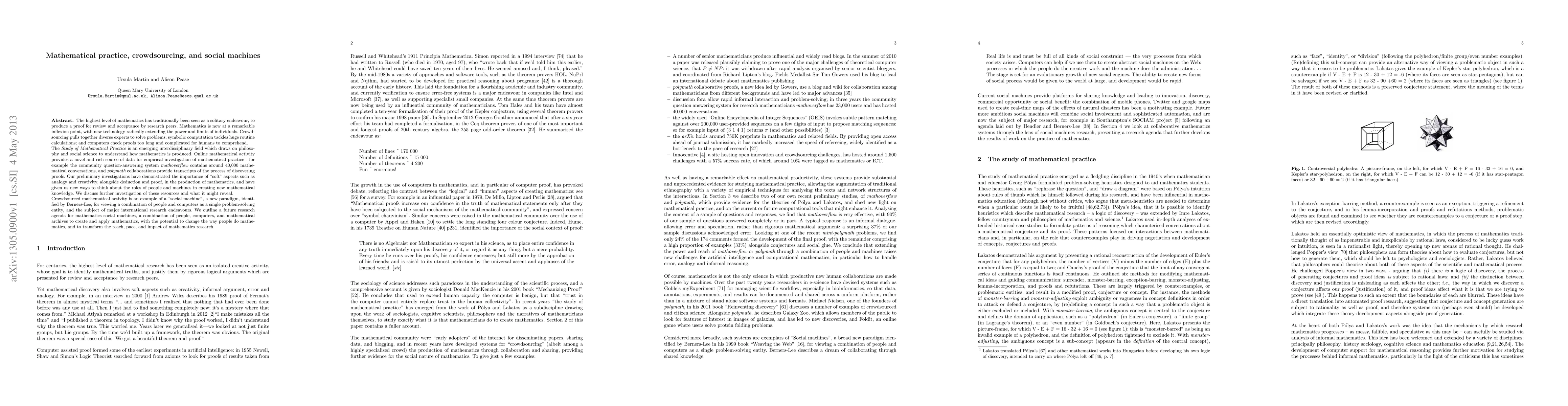 This paper explores how crowdsourcing and new technologies are transforming mathematical practice, emphasizing the collaborative and creative aspects of mathematics alongside traditional proof methods. It proposes a future research agenda for "mathematics social machines," integrating people, computers, and archives to revolutionize mathematical research and its dissemination.