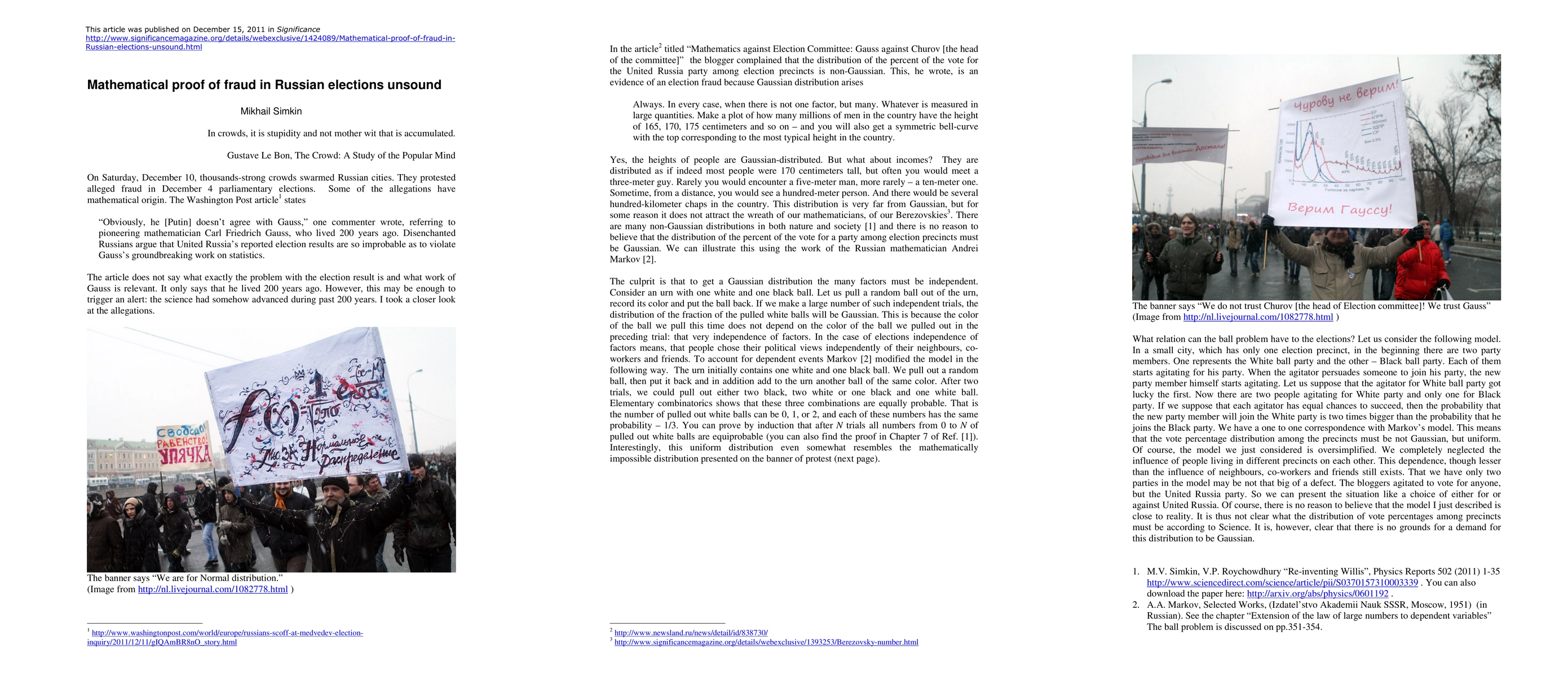 The Washigton Post had published allegations, that results of Russian elections "violate Gauss's groundbreaking work on statistics." I show that these allegations lack scientific basis.