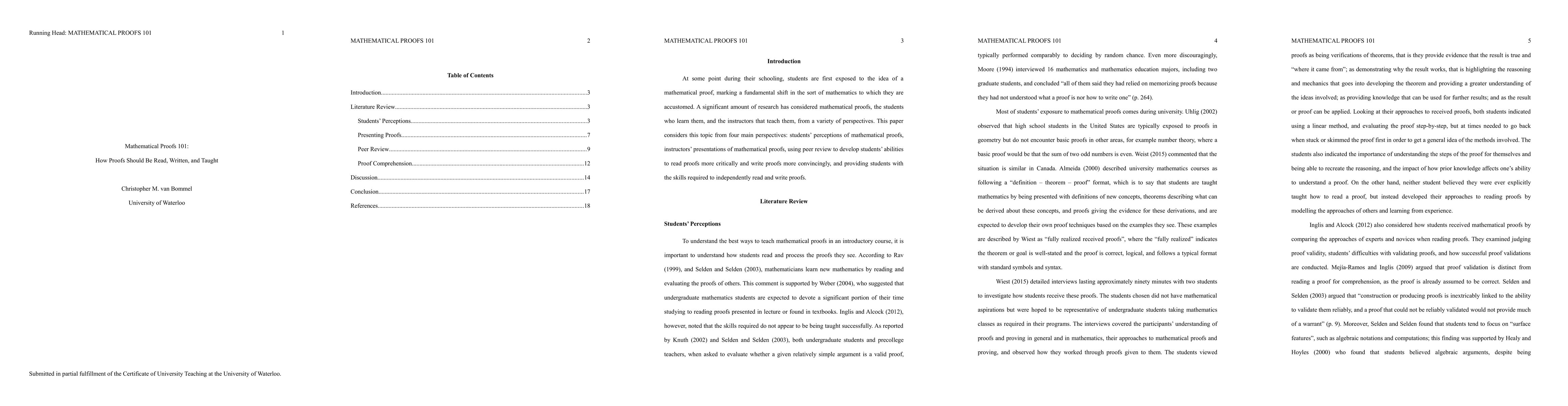 This paper explores students' views on mathematical proofs, instructors' teaching methods, the use of peer review to enhance proof writing and reading skills, and strategies to equip students with the necessary skills for independent proof comprehension and creation.