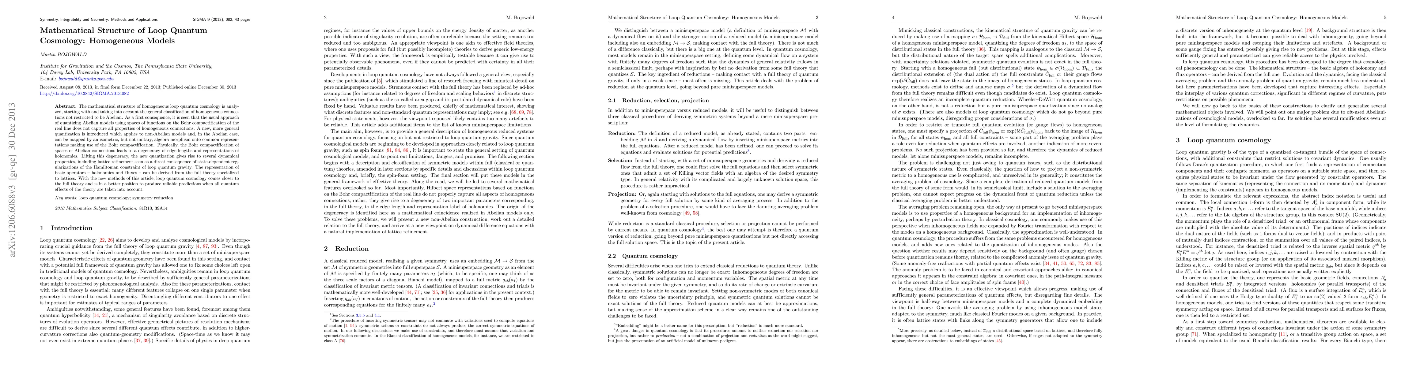 The mathematical structure of homogeneous loop quantum cosmology is analyzed, starting with and taking into account the general classification of homogeneous connections not restricted to be Abelian. As a first consequence, it is seen that the usual approach of quantizing Abelian models using spaces of functions on the Bohr compactification of the real line does not capture all properties of homogeneous connections. A new, more general quantization is introduced which applies to non-Abelian models and, in the Abelian case, can be mapped by an isometric, but not unitary, algebra morphism onto common representations making use of the Bohr compactification. Physically, the Bohr compactification of spaces of Abelian connections leads to a degeneracy of edge lengths and representations of holonomies. Lifting this degeneracy, the new quantization gives rise to several dynamical properties, including lattice refinement seen as a direct consequence of state-dependent regularizations of the Hamiltonian constraint of loop quantum gravity. The representation of basic operators - holonomies and fluxes - can be derived from the full theory specialized to lattices. With the new methods of this article, loop quantum cosmology comes closer to the full theory and is in a better position to produce reliable predictions when all quantum effects of the theory are taken into account.