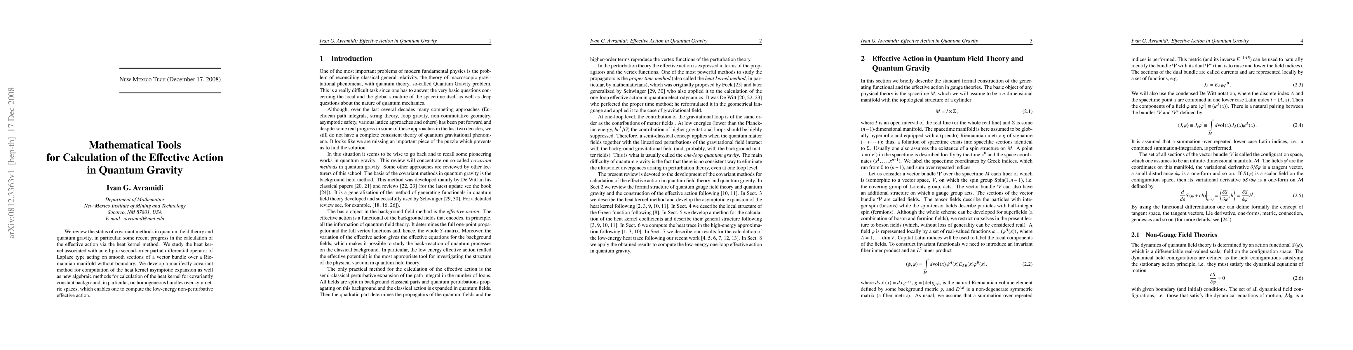 This paper reviews recent advancements in covariant methods for quantum field theory and quantum gravity, focusing on the heat kernel method for calculating the effective action. It introduces a new covariant approach for the heat kernel asymptotic expansion and develops algebraic techniques for homogeneous bundles over symmetric spaces to compute the low-energy effective action.