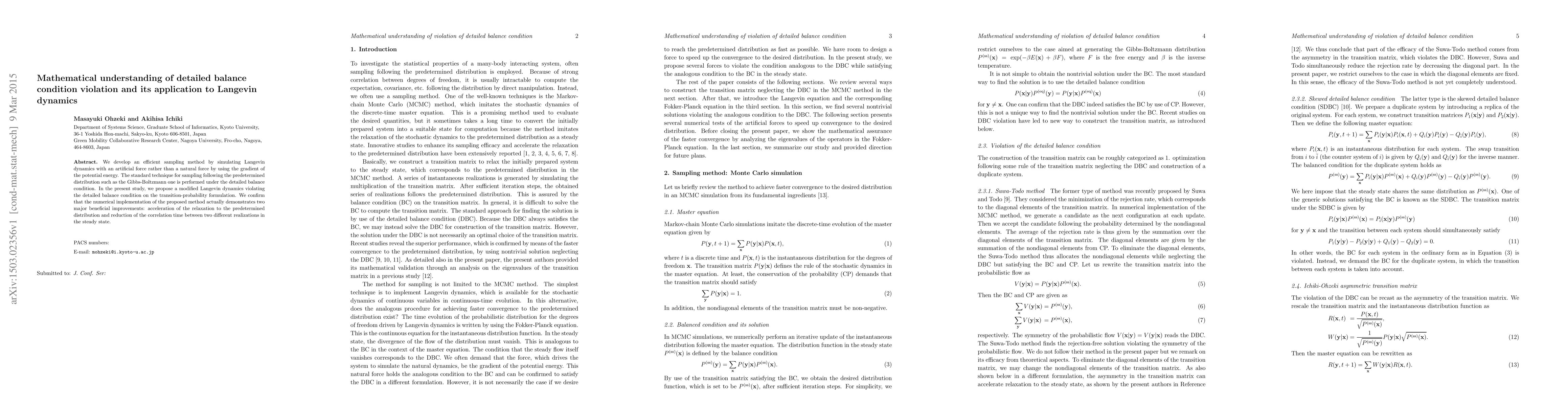 This paper proposes a modified Langevin dynamics method that intentionally violates the detailed balance condition to enhance sampling efficiency. The new approach, using an artificial force, accelerates relaxation to the desired distribution and reduces correlation time, offering significant improvements over traditional methods.
