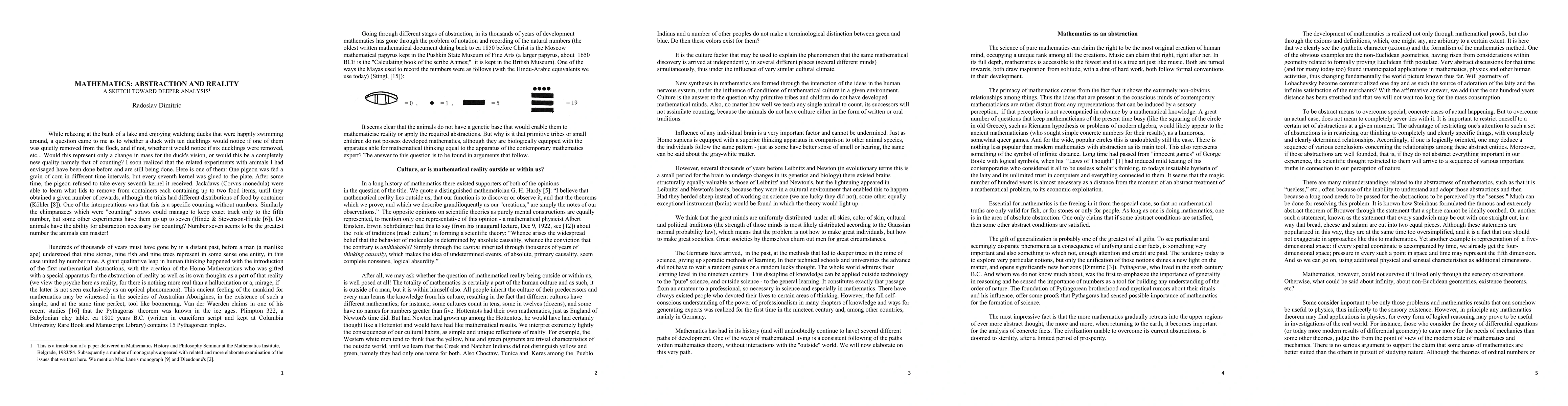 This paper establishes grounds for deeper exploration into the question of dual nature of mathematics as an abstract discipline and as a concrete science. It is argued, as one of the consequences of the discussion, that the division into "pure" and "applied" mathematics is artificial. The criterion of creativity and applicability outside of the original context is used as a litmus test. It is emphasized that great societies and cultural environments produce great mathematics and individual mathematicians.