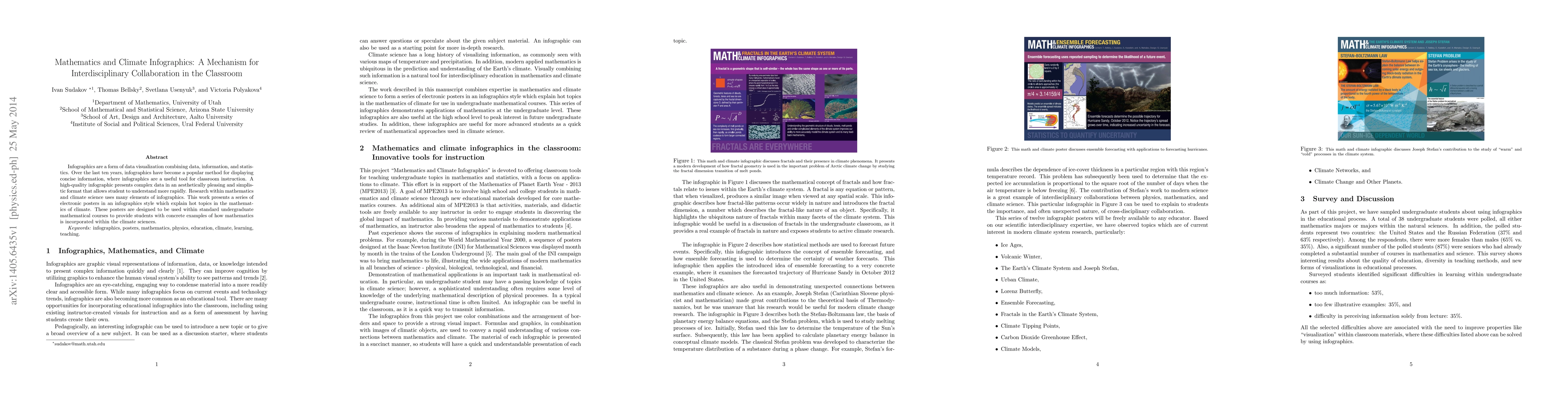 This paper explores the use of infographics in combining mathematics and climate science to enhance interdisciplinary collaboration in the classroom. The study presents electronic posters in an infographic style to illustrate complex mathematical concepts related to climate topics, aiming to make these topics more accessible and engaging for undergraduate students.