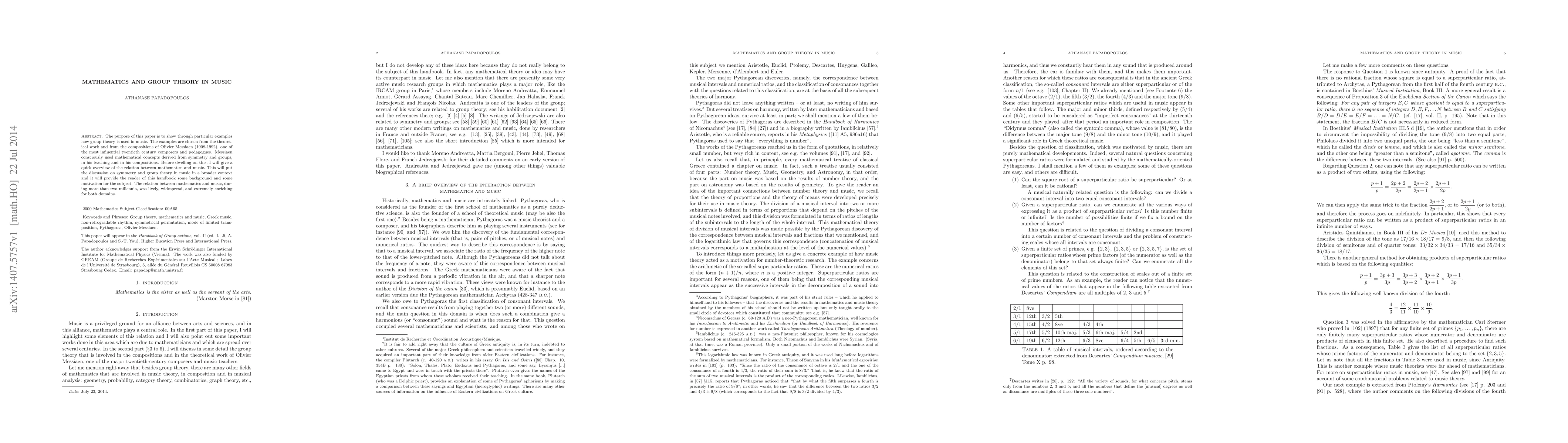 This paper explores the application of group theory in music, particularly through the works of composer Olivier Messiaen, who utilized mathematical concepts like symmetry and groups in his compositions and teaching. The paper provides an overview of the historical relationship between mathematics and music to contextualize the use of group theory in musical theory.