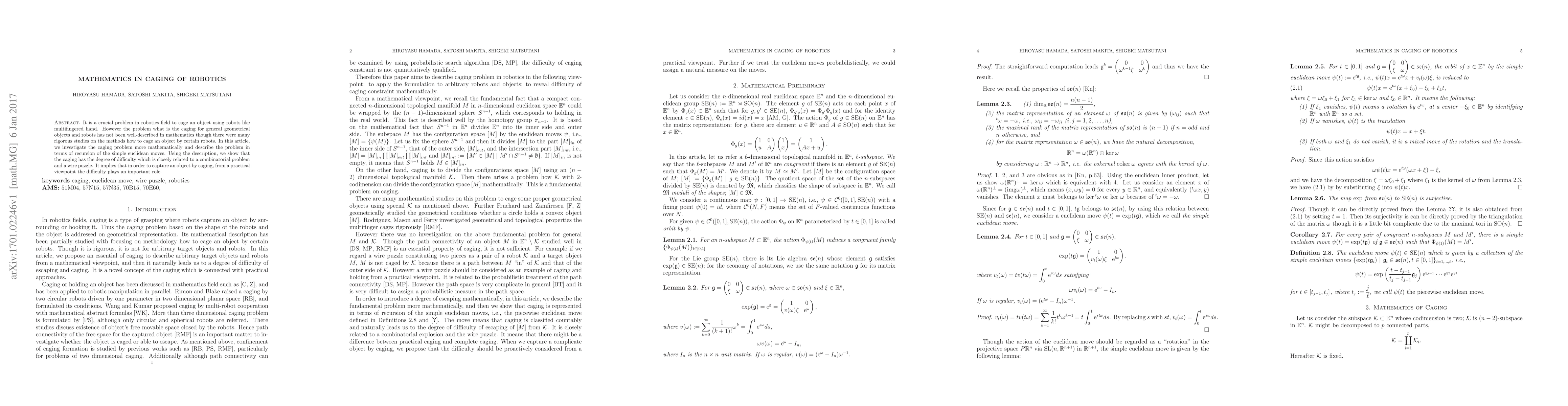 It is a crucial problem in robotics field to cage an object using robots like multifingered hand. However the problem what is the caging for general geometrical objects and robots has not been well-described in mathematics though there were many rigorous studies on the methods how to cage an object by certain robots. In this article, we investigate the caging problem more mathematically and describe the problem in terms of recursion of the simple euclidean moves. Using the description, we show that the caging has the degree of difficulty which is closely related to a combinatorial problem and a wire puzzle. It implies that in order to capture an object by caging, from a practical viewpoint the difficulty plays an important role.