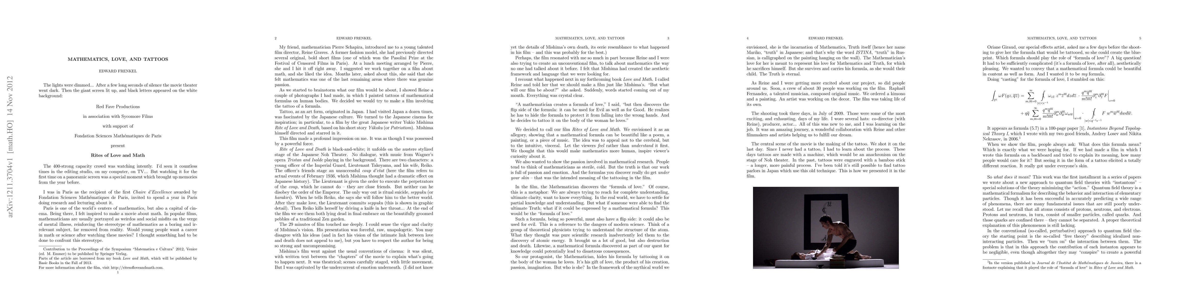 Reflections on the film "Rites of Love and Math" (directed by Reine Graves and the author) and its "formula of love".