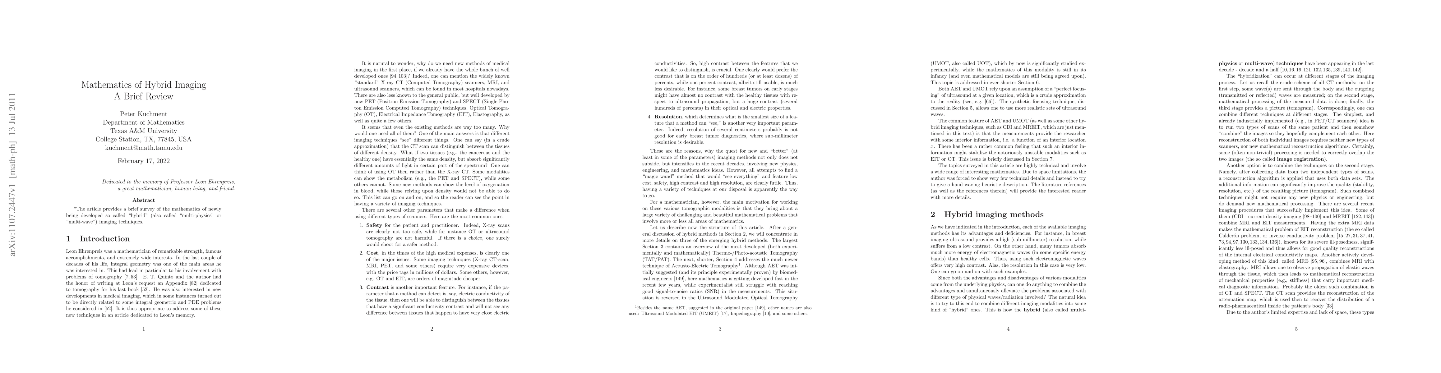Summary: This paper offers a concise review of the mathematical foundations underlying emerging hybrid imaging techniques, which integrate multiple physical phenomena or wave types for improved diagnostic imaging. The focus is on the mathematical models and algorithms that enable these advanced imaging modalities.