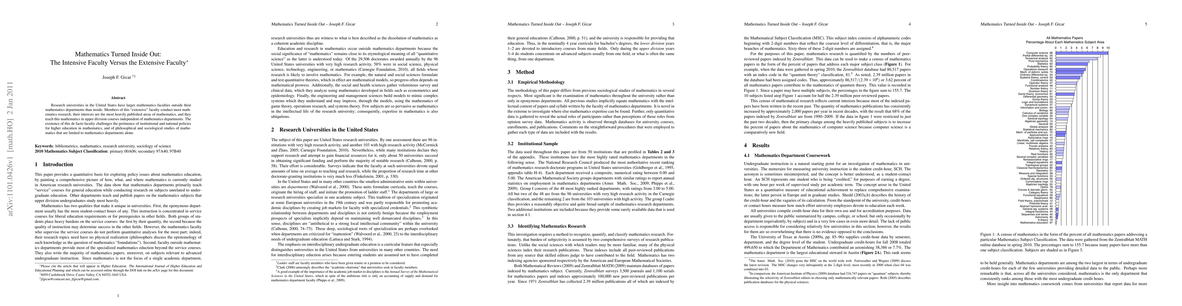 Research universities in the United States have larger mathematics faculties outside their mathematics departments than inside. Members of this "extensive" faculty conduct most mathematics research, their interests are the most heavily published areas of mathematics, and they teach this mathematics in upper division courses independent of mathematics departments. The existence of this de facto faculty challenges the pertinence of institutional and national policies for higher education in mathematics, and of philosophical and sociological studies of mathematics that are limited to mathematics departments alone.