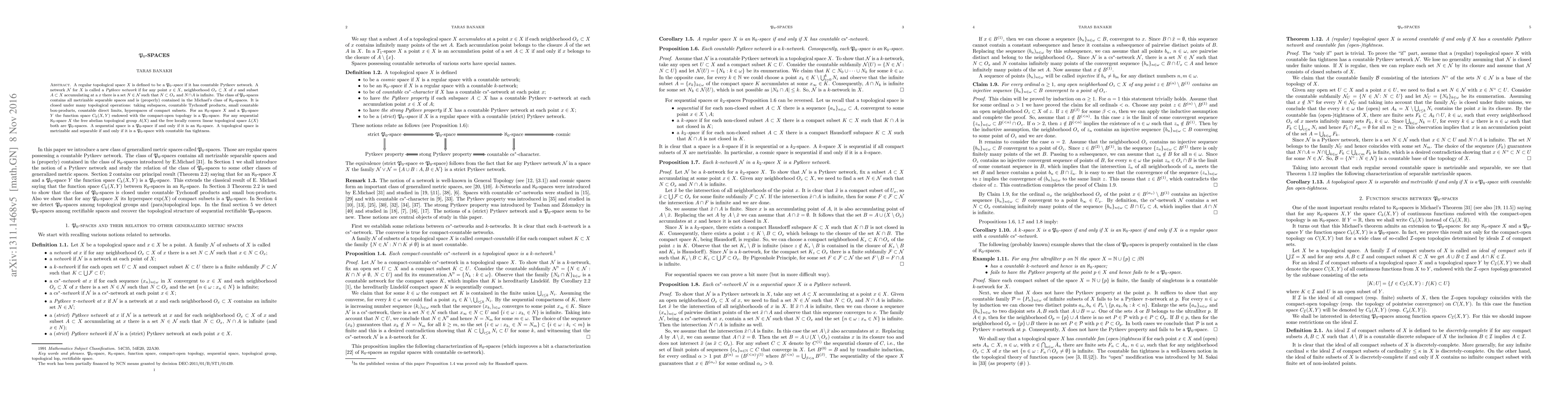 This paper defines $\mathfrak P_0$-spaces as regular topological spaces with countable Pytkeev networks, which are networks satisfying specific accumulation properties. It explores the properties and relationships of $\mathfrak P_0$-spaces, showing they include all metrizable separable spaces and are closed under various topological operations.