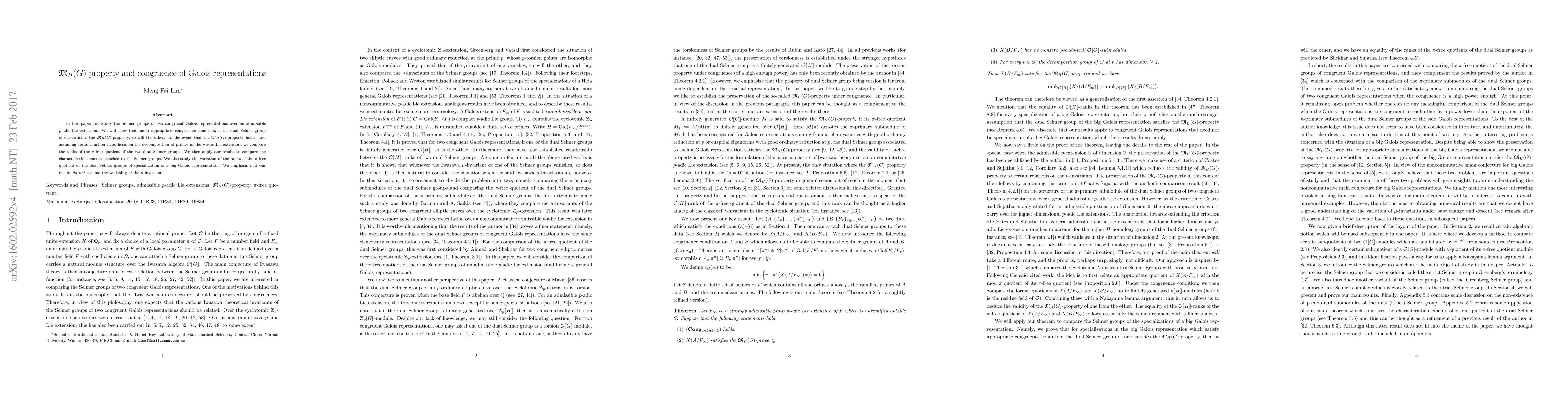 This paper investigates the $\mathfrak{M}_H(G)$-property in the context of Selmer groups of congruent Galois representations over $p$-adic Lie extensions. It demonstrates that if one dual Selmer group satisfies this property under congruence conditions, so does the other, and compares their ranks under additional hypotheses.