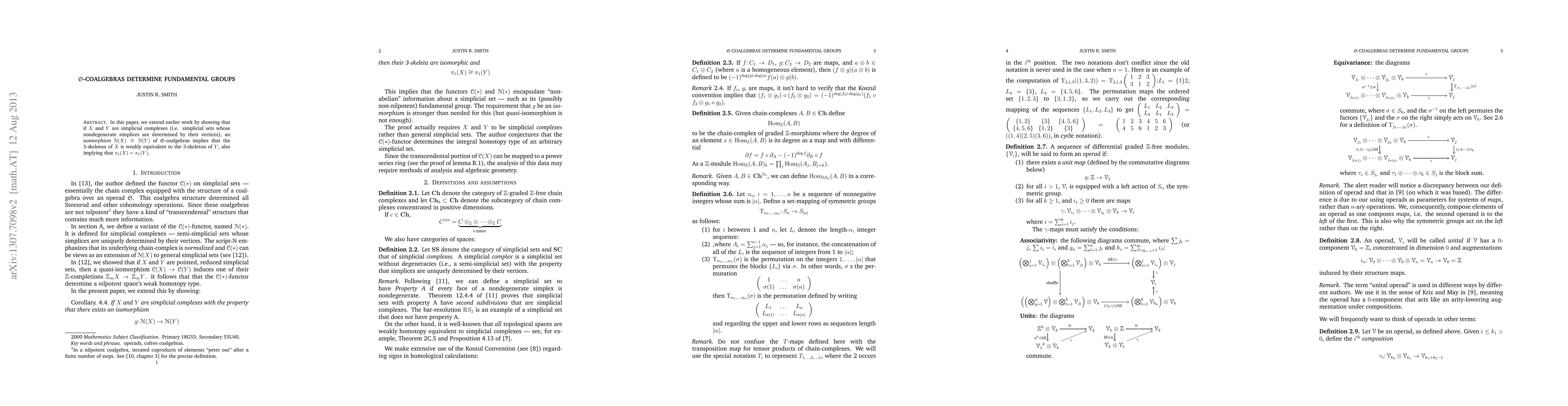 In this paper, we extend earlier work by showing that if $X$ and $Y$ are simplicial complexes (i.e. simplicial sets whose nondegenerate simplices are determined by their vertices), an isomorphism $\mathcal{C}(X)\cong\mathcal{C}(Y)$ of coalgebras over the Barratt-Eccles operad implies that the 3-skeleton of $X$ is weakly equivalent to the 3-skeleton of $Y$, also implying that $\pi_{1}(X)=\pi_{1}(Y)$.