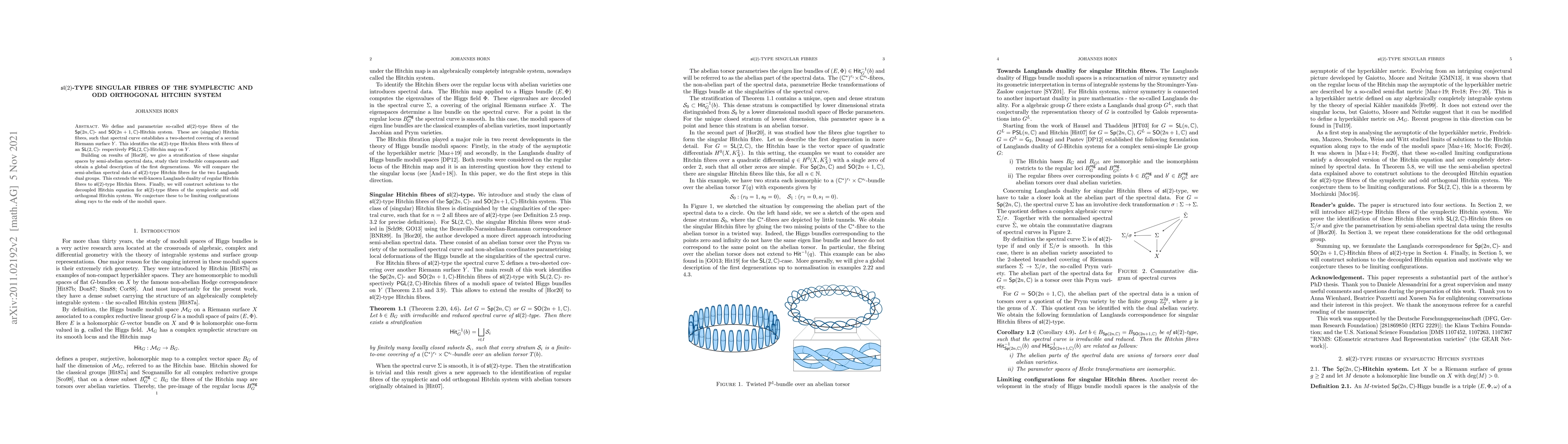 This paper defines and parametrises $\mathfrak{sl}(2)$-type singular fibres in the symplectic and odd orthogonal Hitchin systems, identifying them with $\mathsf{SL}(2,\mathbb{C})$ and $\mathsf{PSL}(2,\mathbb{C})$ Hitchin maps. The authors extend Langlands duality to these fibres and provide a global description and solutions to the decoupled Hitchin equation, hypothesizing they are limiting metrics.