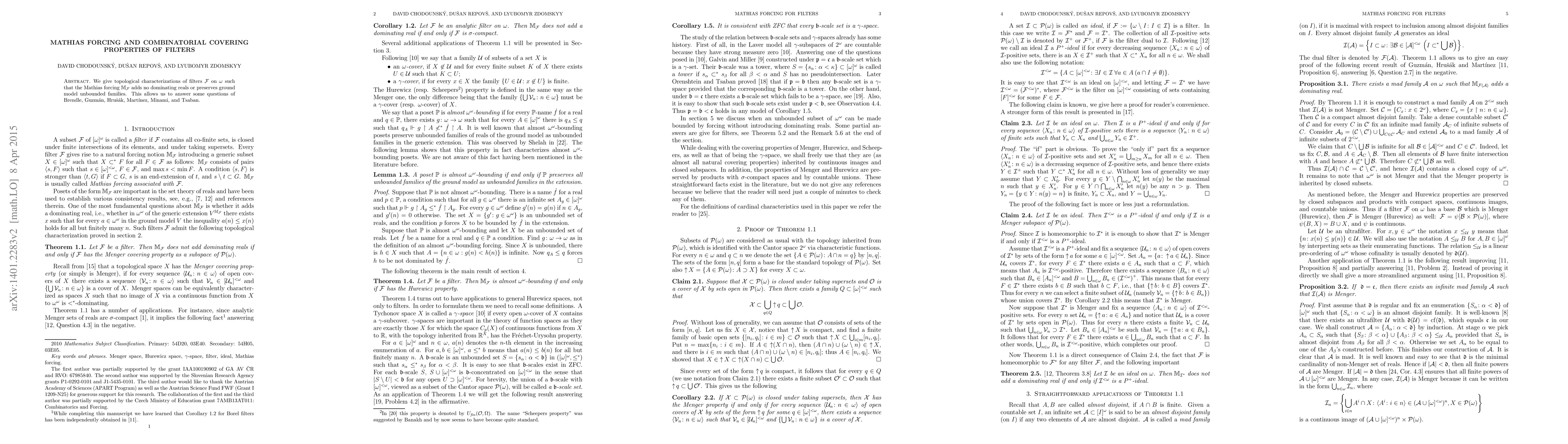 We give topological characterizations of filters $F$ on $w$ such that the Mathias forcing $M_F$ adds no dominating reals or preserves ground model unbounded families. This allows us to answer some questions of Brendle, Guzm\'an, Hru\v{s}\'ak, Mart\'{\i}nez, Minami, and Tsaban.