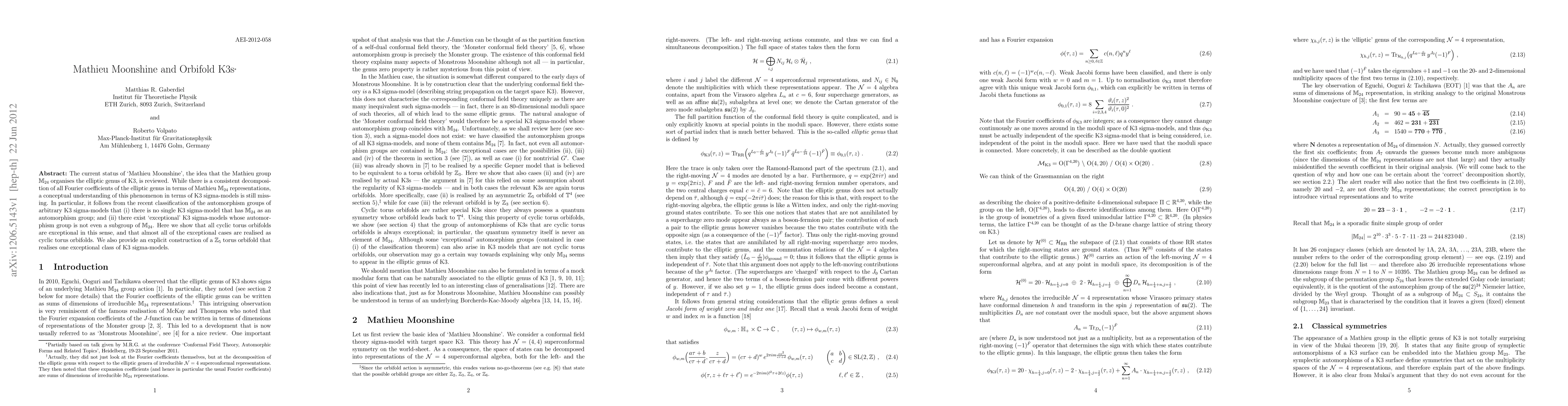 This paper reviews the concept of Mathieu Moonshine and its connection to K3 sigma-models, highlighting that while Fourier coefficients decompose consistently using Mathieu group representations, a conceptual understanding remains elusive. It finds that no K3 sigma-model has M24 as its automorphism group and most exceptional cases are cyclic torus orbifolds, including an explicit Z5 torus orbifold realization.