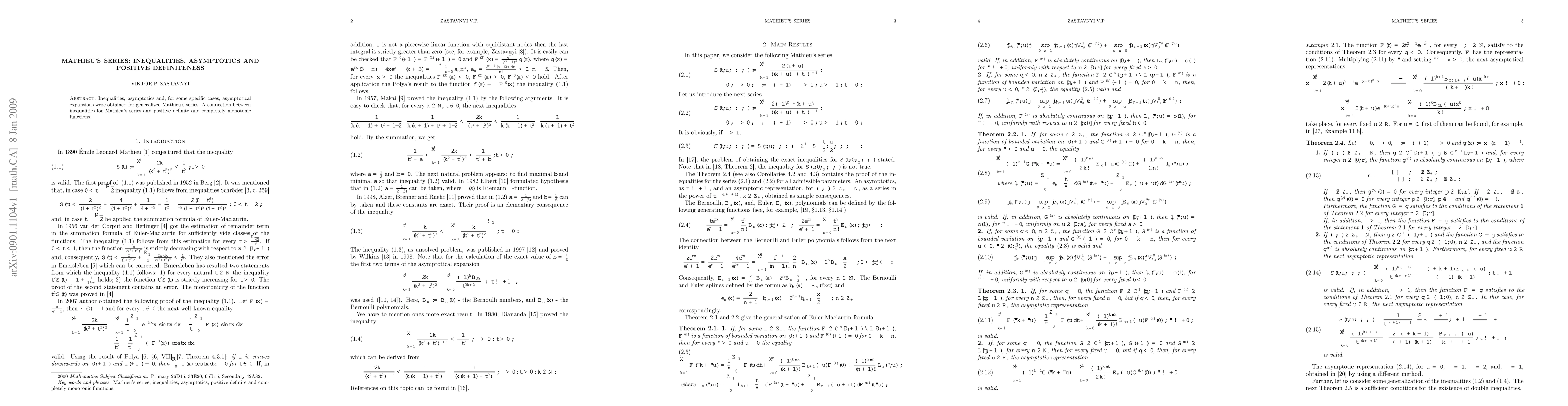 Inequalities, asymptotics and, for some specific cases, asymptotical expansions were obtained for generalized Mathieu's series. A connection between inequalities for Mathieu's series and positive definite and completely monotonic functions.
