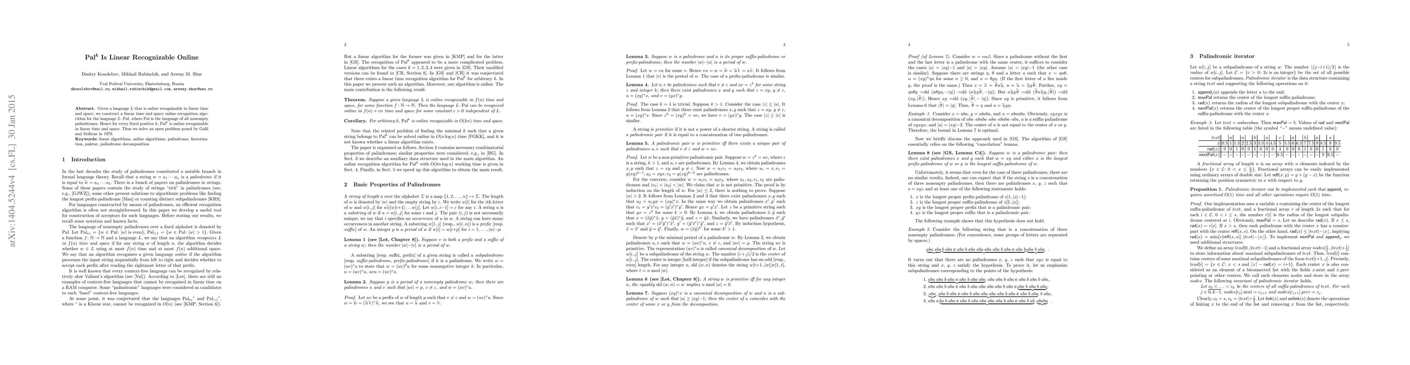 Given a language $L$ that is online recognizable in linear time and space, we construct a linear time and space online recognition algorithm for the language $L\cdot\mathrm{Pal}$, where $\mathrm{Pal}$ is the language of all nonempty palindromes. Hence for every fixed positive $k$, $\mathrm{Pal}^k$ is online recognizable in linear time and space. Thus we solve an open problem posed by Galil and Seiferas in 1978.