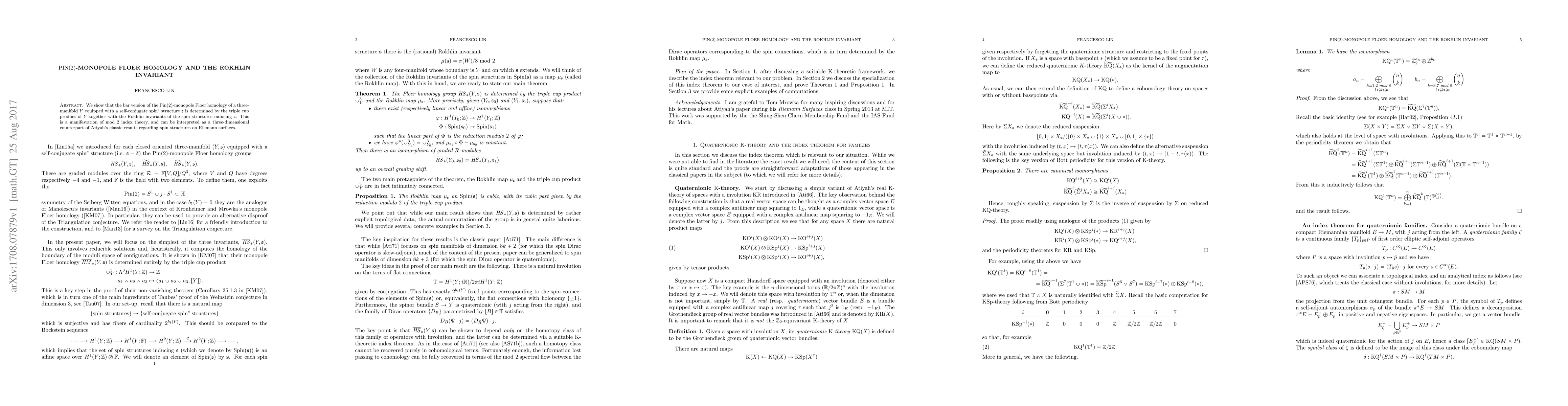 Summary: The paper demonstrates that the bar version of $\mathrm{Pin}(2)$-monopole Floer homology for a three-manifold with a self-conjugate spin$^c$ structure is determined by the triple cup product of the manifold and the Rokhlin invariants, establishing a three-dimensional analogy to Atiyah's results on spin structures on Riemann surfaces.