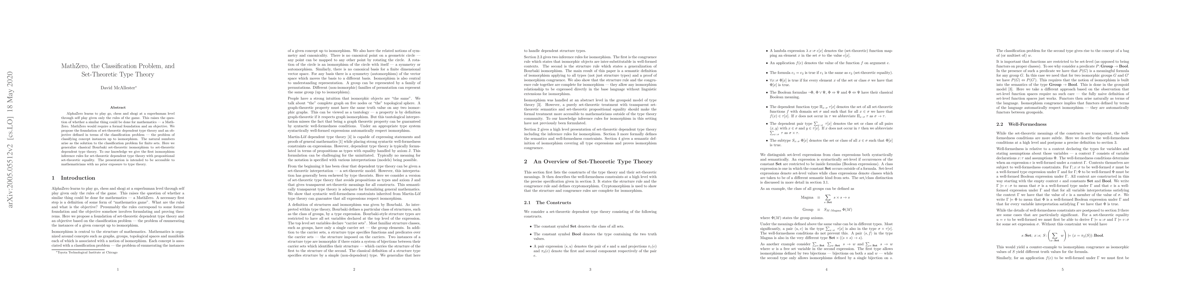AlphaZero learns to play go, chess and shogi at a superhuman level through self play given only the rules of the game. This raises the question of whether a similar thing could be done for mathematics -- a MathZero. MathZero would require a formal foundation and an objective. We propose the foundation of set-theoretic dependent type theory and an objective defined in terms of the classification problem -- the problem of classifying concept instances up to isomorphism. The natural numbers arise as the solution to the classification problem for finite sets. Here we generalize classical Bourbaki set-theoretic isomorphism to set-theoretic dependent type theory. To our knowledge we give the first isomorphism inference rules for set-theoretic dependent type theory with propositional set-theoretic equality. The presentation is intended to be accessible to mathematicians with no prior exposure to type theory.