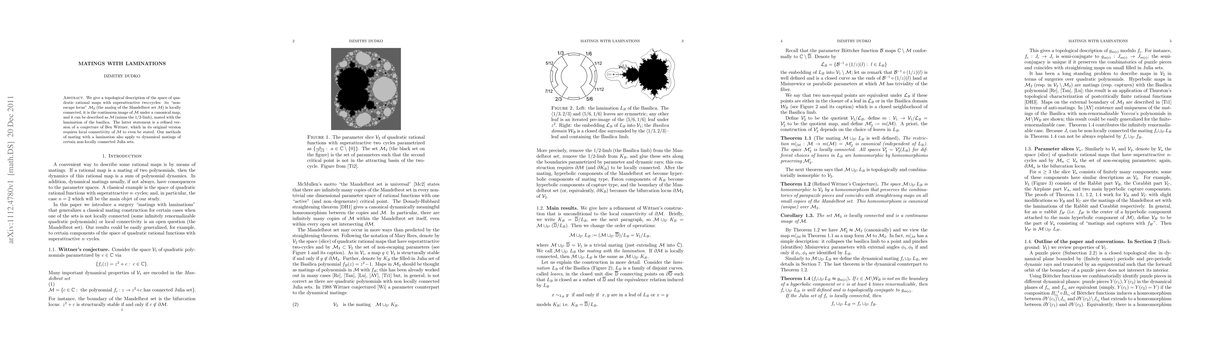 We give a topological description of the space of quadratic rational maps with superattractive two-cycles: its "non-escape locus" M2 (the analog of the Mandelbrot set M) is locally connected, it is the continuous image of M under a canonical map, and it can be described as M (minus the 1/2-limb), mated with the lamination of the basilica. The latter statement is a refined version of a conjecture of Ben Wittner, which in its original version requires local connectivity of M to even be stated. Our methods of mating with a lamination also apply to dynamical matings of certain non-locally connected Julia sets.