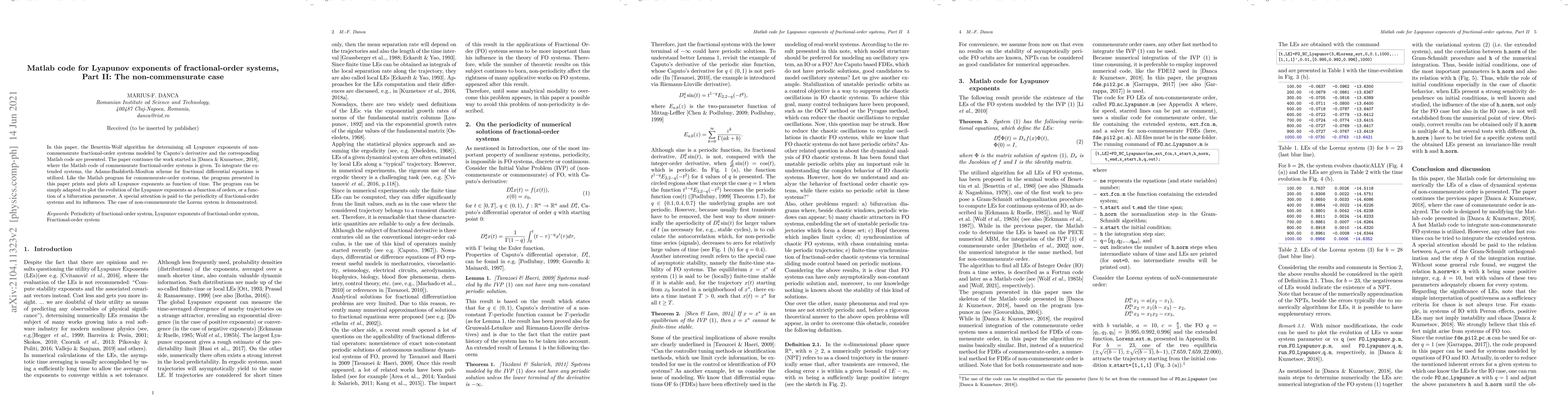 The paper introduces a modified Matlab code (FO_NC_Lyapunov.m) for numerically determining Lyapunov exponents of non-commensurate fractional-order systems, extending previous work on commensurate-order systems.