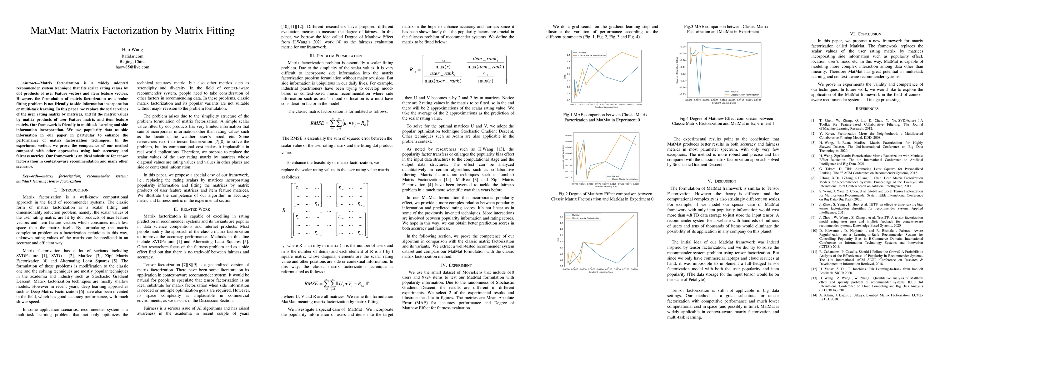 Matrix factorization is a widely adopted recommender system technique that fits scalar rating values by dot products of user feature vectors and item feature vectors. However, the formulation of matrix factorization as a scalar fitting problem is not friendly to side information incorporation or multi-task learning. In this paper, we replace the scalar values of the user rating matrix by matrices, and fit the matrix values by matrix products of user feature matrix and item feature matrix. Our framework is friendly to multitask learning and side information incorporation. We use popularity data as side information in our paper in particular to enhance the performance of matrix factorization techniques. In the experiment section, we prove the competence of our method compared with other approaches using both accuracy and fairness metrics. Our framework is an ideal substitute for tensor factorization in context-aware recommendation and many other scenarios.