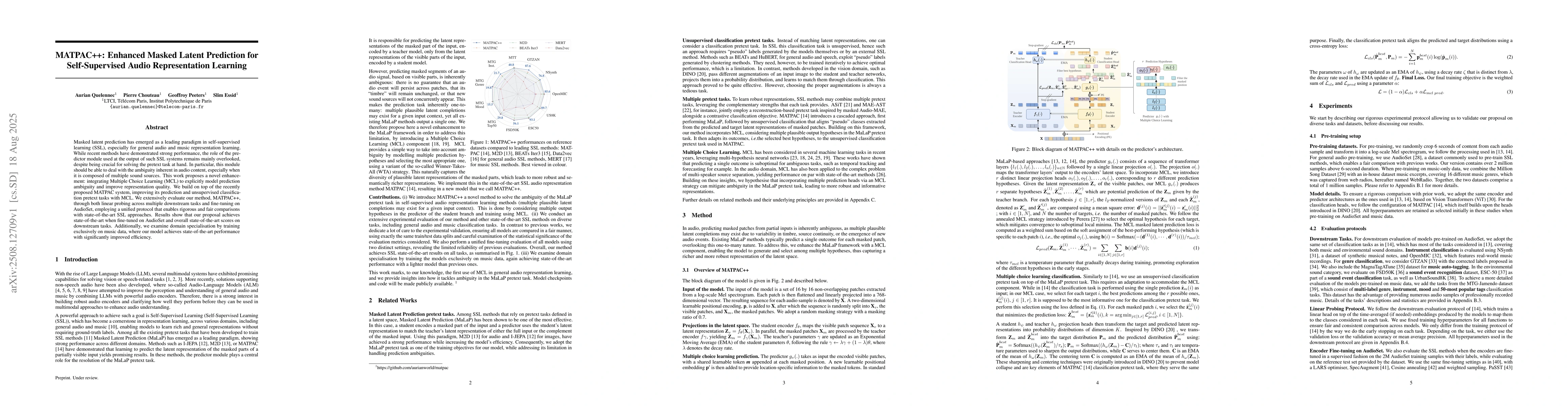 Masked latent prediction has emerged as a leading paradigm in self-supervised learning (SSL), especially for general audio and music representation learning. While recent methods have demonstrated strong performance, the role of the predictor module used at the output of such SSL systems remains mainly overlooked, despite being crucial for solving the pretext task at hand. In particular, this module should be able to deal with the ambiguity inherent in audio content, especially when it is composed of multiple sound sources. This work proposes a novel enhancement: integrating Multiple Choice Learning (MCL) to explicitly model prediction ambiguity and improve representation quality. We build on top of the recently proposed MATPAC system, improving its prediction and unsupervised classification pretext tasks with MCL. We extensively evaluate our method, MATPAC++, through both linear probing across multiple downstream tasks and fine-tuning on AudioSet, employing a unified protocol that enables rigorous and fair comparisons with state-of-the-art SSL approaches. Results show that our proposal achieves state-of-the-art when fine-tuned on AudioSet and overall state-of-the-art scores on downstream tasks. Additionally, we examine domain specialisation by training exclusively on music data, where our model achieves state-of-the-art performance with significantly improved efficiency.