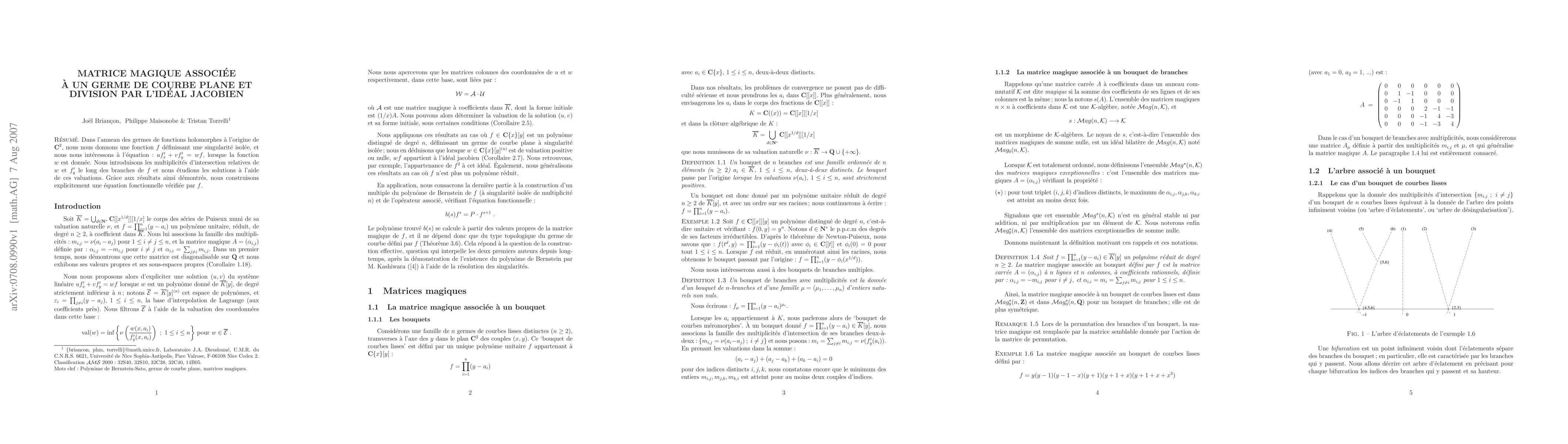 In the ring of holomorphic functions at the origin of C^2, we consider the equation uf'_x+vf'_y=wf where f and w are given. We introduce intersection multiplicities relative to w and f'_y along the branches of f, and we study the solutions (u,v) using these valuations. As an application, we construct an explicit functional equation satisfied by f.