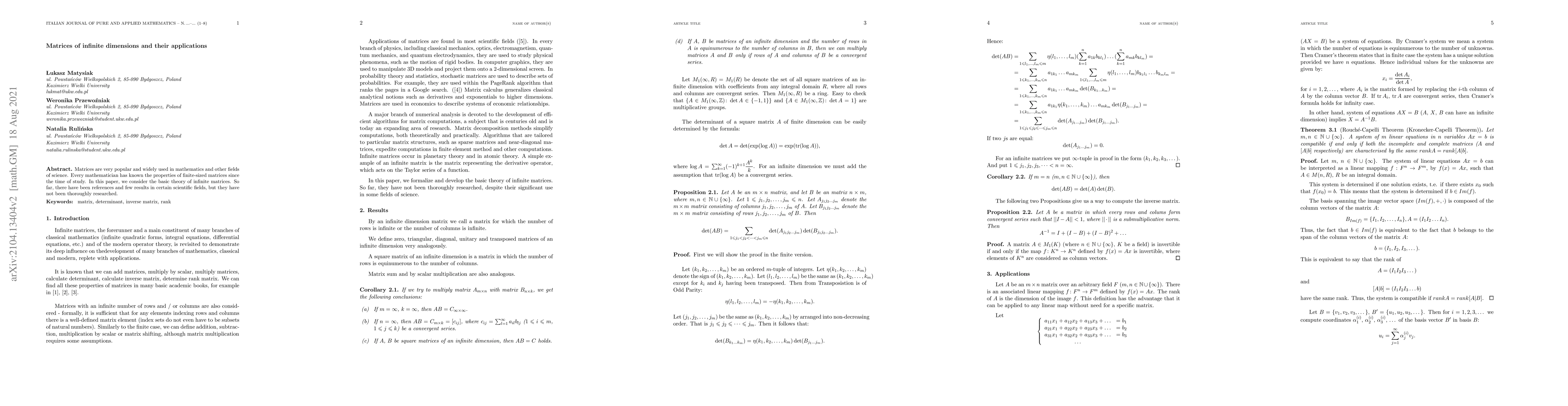 This paper presents a comprehensive theory of infinite matrices, building on existing research to provide a complete framework for their study. It explores the properties and applications of infinite matrices in various scientific fields.