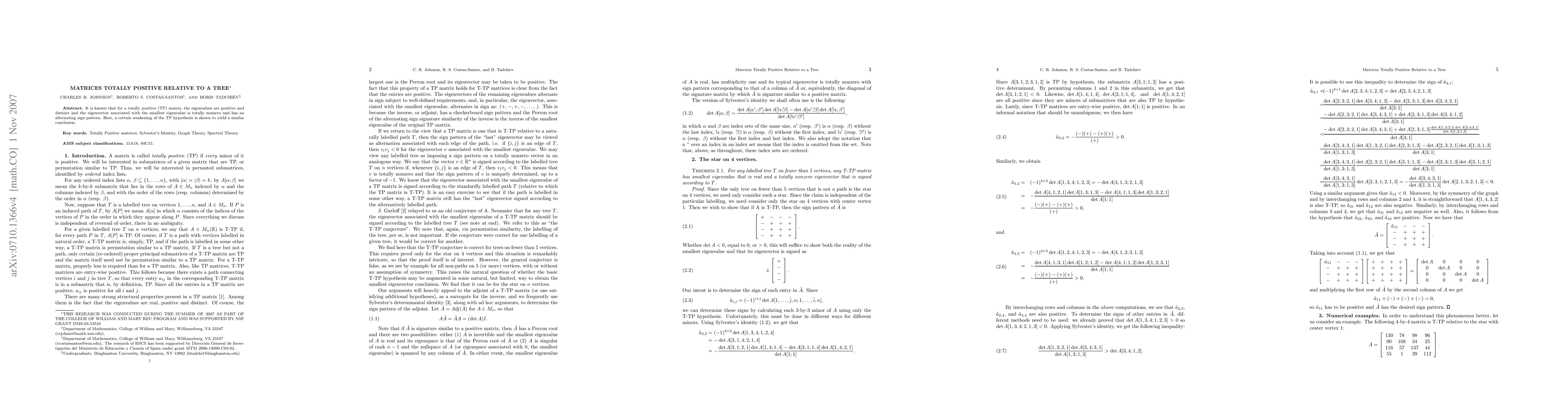 This paper explores matrices 'totally positive relative to a tree', a weaker condition than total positivity. It demonstrates that under this condition, eigenvalues remain positive and distinct, and the eigenvector linked to the smallest eigenvalue still exhibits a nonzero, alternating sign pattern.