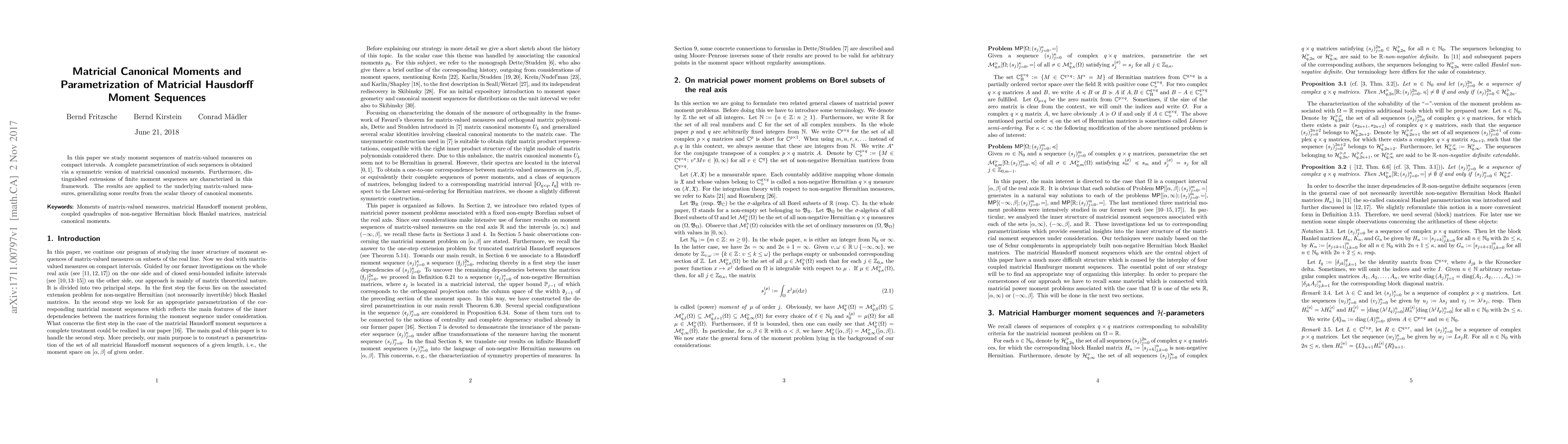 This paper develops a complete parametrization of matrix-valued moment sequences using symmetric matricial canonical moments, and characterizes extensions of finite sequences within this framework, extending classical scalar moment theory results to the matrix setting.