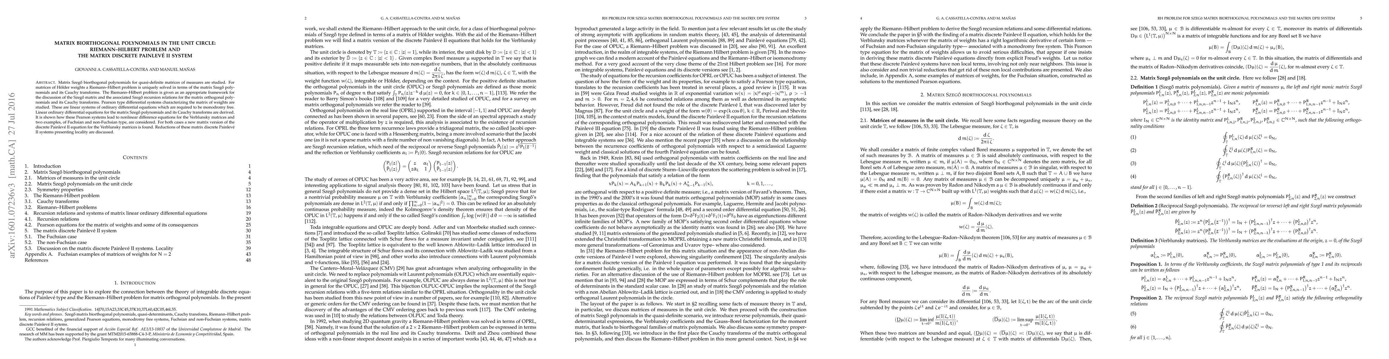 Matrix Szego biorthogonal polynomials for quasi-definite matrices of measures are studied. For matrices of Holder weights a Riemann-Hilbert problem is uniquely solved in terms of the matrix Szego polynomials and its Cauchy transforms. The Riemann-Hilbert problem is given as an appropriate framework for the discussion of the Szego matrix and the associated Szego recursion relations for the matrix orthogonal polynomials and its Cauchy transforms. Pearson type differential systems characterizing the matrix of weights are studied. These are linear systems of ordinary differential equations which are required to be monodromy free. Linear ordinary differential equations for the matrix Szego polynomials and its Cauchy transforms are derived. It is shown how these Pearson systems lead to nonlinear difference equations for the Verblunsky matrices and two examples, of Fuchsian and non-Fuchsian type, are considered. For both cases a new matrix version of the discrete Painlev\'e II equation for the Verblunsky matrices is found. Reductions of these matrix discrete Painleve II systems presenting locality are discussed.