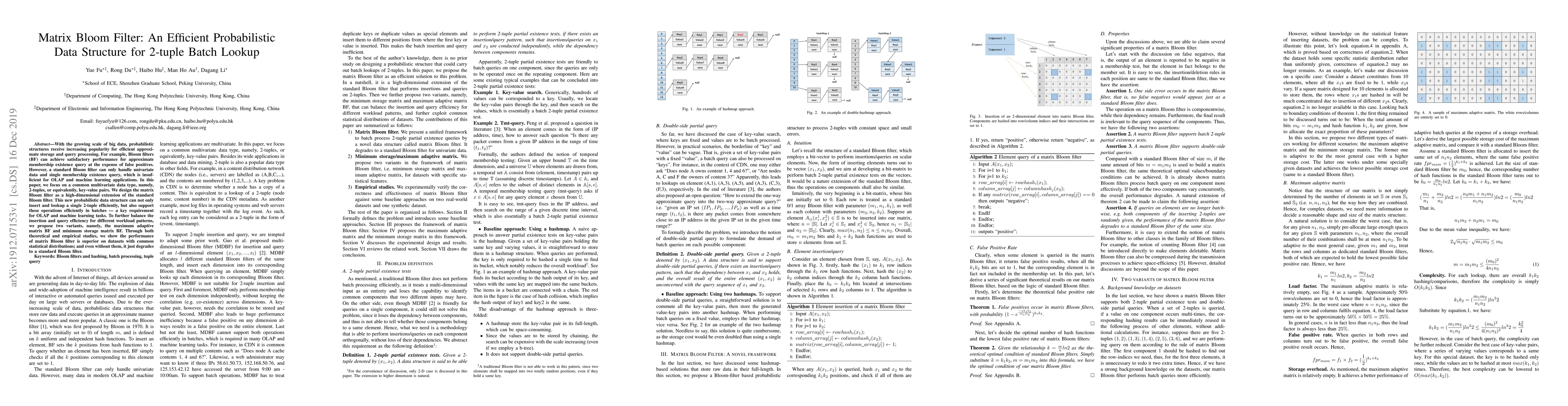 With the growing scale of big data, probabilistic structures receive increasing popularity for efficient approximate storage and query processing. For example, Bloom filters (BF) can achieve satisfactory performance for approximate membership existence query at the expense of false positives. However, a standard Bloom filter can only handle univariate data and single membership existence query, which is insufficient for OLAP and machine learning applications. In this paper, we focus on a common multivariate data type, namely, 2-tuples, or equivalently, key-value pairs. We design the matrix Bloom filter as a high-dimensional extension of the standard Bloom filter. This new probabilistic data structure can not only insert and lookup a single 2-tuple efficiently, but also support these operations efficiently in batches --- a key requirement for OLAP and machine learning tasks. To further balance the insertion and query efficiency for different workload patterns, we propose two variants, namely, the maximum adaptive matrix BF and minimum storage matrix BF. Through both theoretical and empirical studies, we show the performance of matrix Bloom filter is superior on datasets with common statistical distributions; and even without them, it just degrades to a standard Bloom filter.