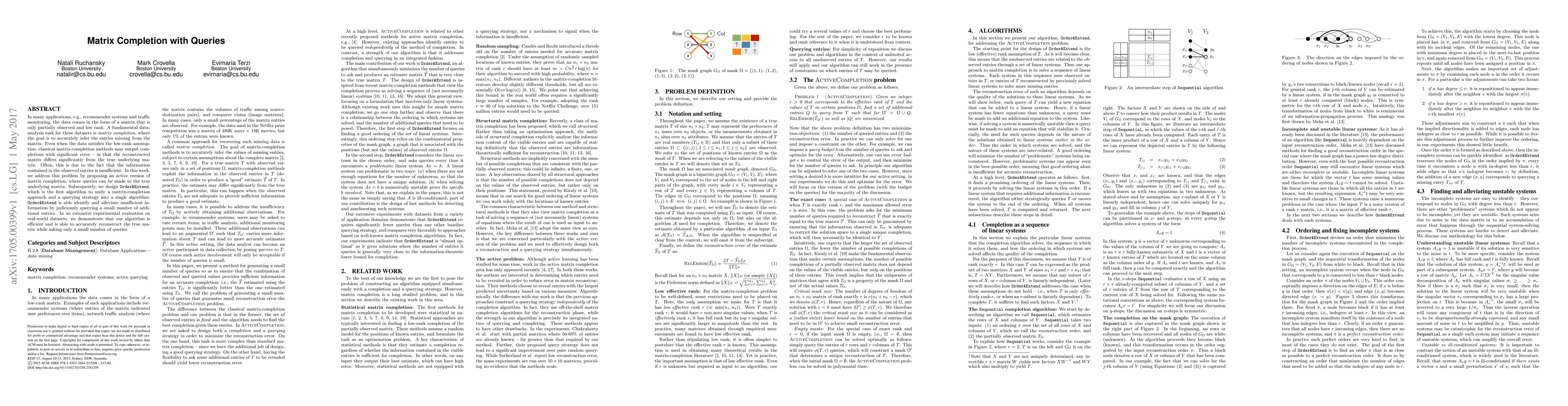 A new algorithm called Order&Extend improves matrix completion accuracy by actively querying the underlying matrix to alleviate insufficient information, achieving efficient and accurate results with a small number of queries.
