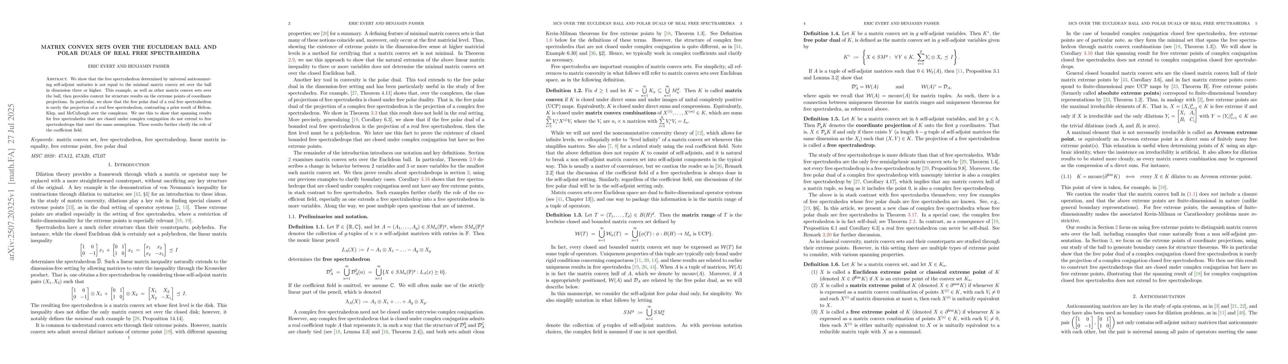 We show that the free spectrahedron determined by universal anticommuting self-adjoint unitaries is not equal to the minimal matrix convex set over the ball in dimension three or higher. This example, as well as other matrix convex sets over the ball, then provides context for structure results on the extreme points of coordinate projections. In particular, we show that the free polar dual of a real free spectrahedron is rarely the projection of a real free spectrahedron, contrasting a prior result of Helton, Klep, and McCullough over the complexes. We use this to show that spanning results for free spectrahedra that are closed under complex conjugation do not extend to free spectrahedrops that meet the same assumption. These results further clarify the role of the coefficient field.