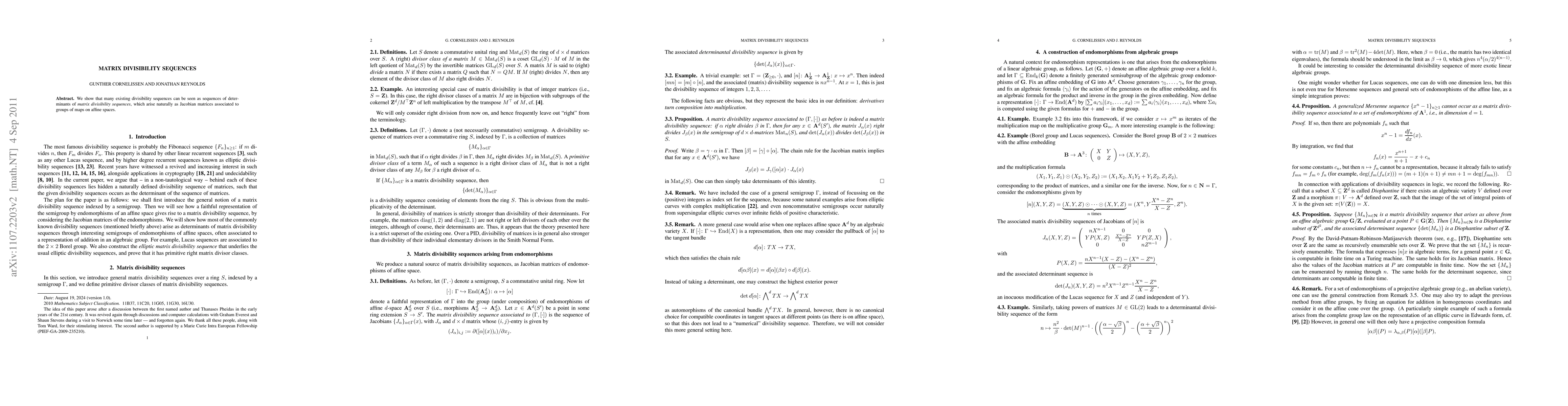 This work bridges matrix theory and divisibility sequences, offering new perspectives on existing sequences and potentially expanding applications in number theory and cryptography.