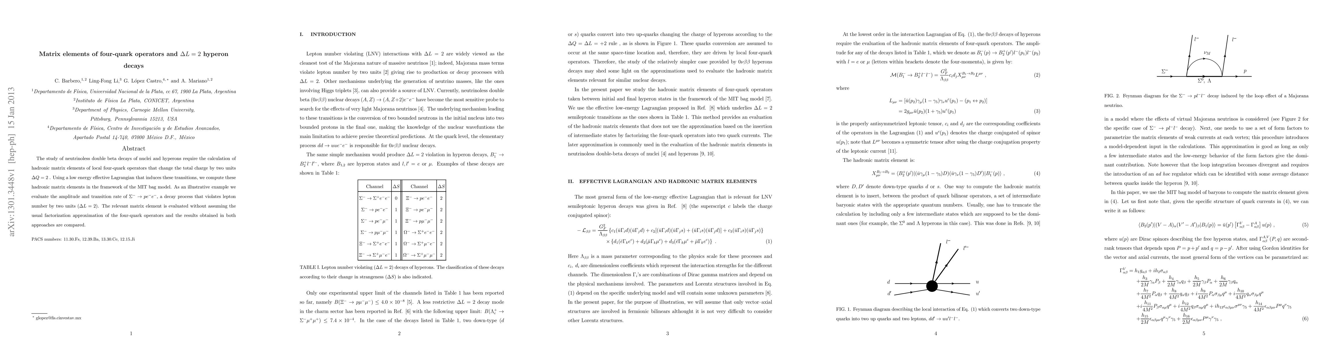 Researchers calculated hadronic matrix elements of four-quark operators for Delta L=2 hyperon decays using the MIT bag model, aiming to study neutrinoless double beta decays and their implications.