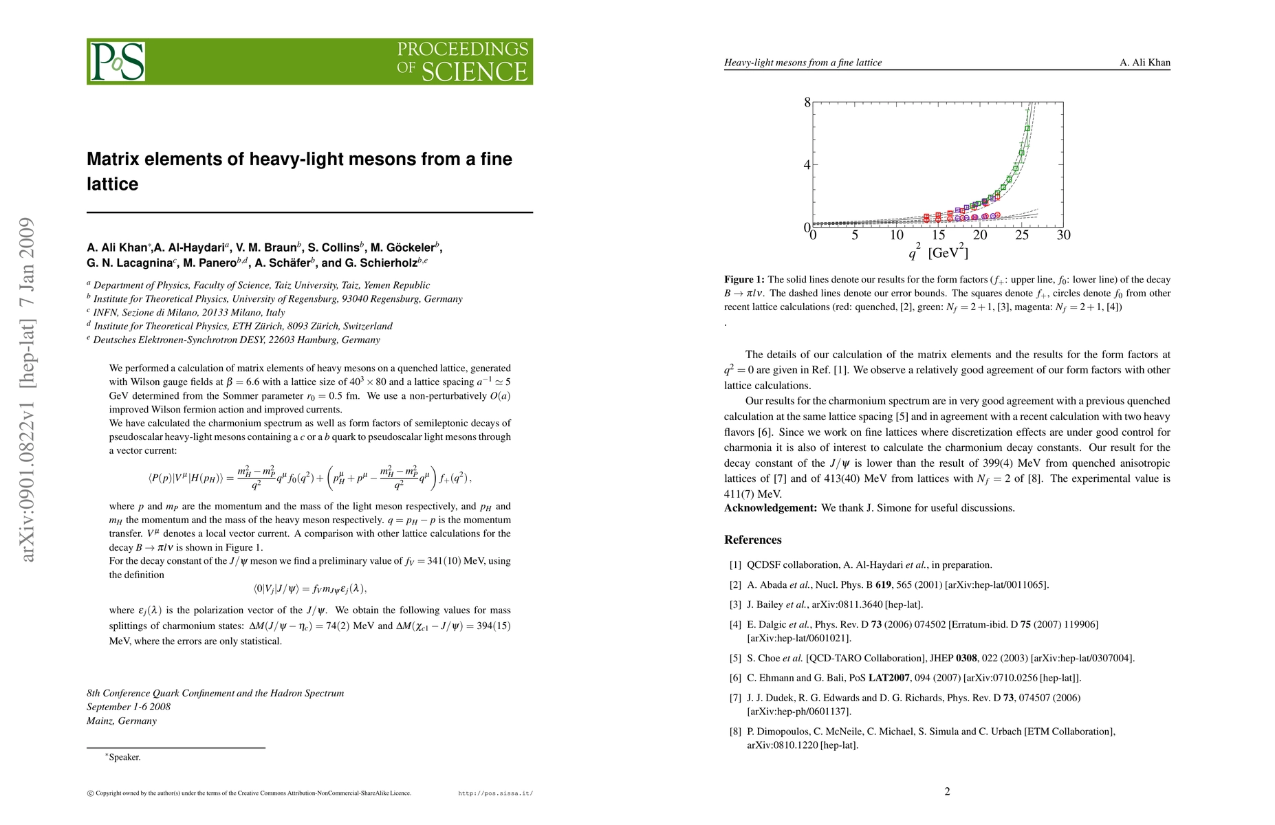 Summary: This study presents lattice QCD calculations of semileptonic decay matrix elements for heavy-light mesons and determines the charmonium spectrum and decay constants using fine quenched lattice techniques.