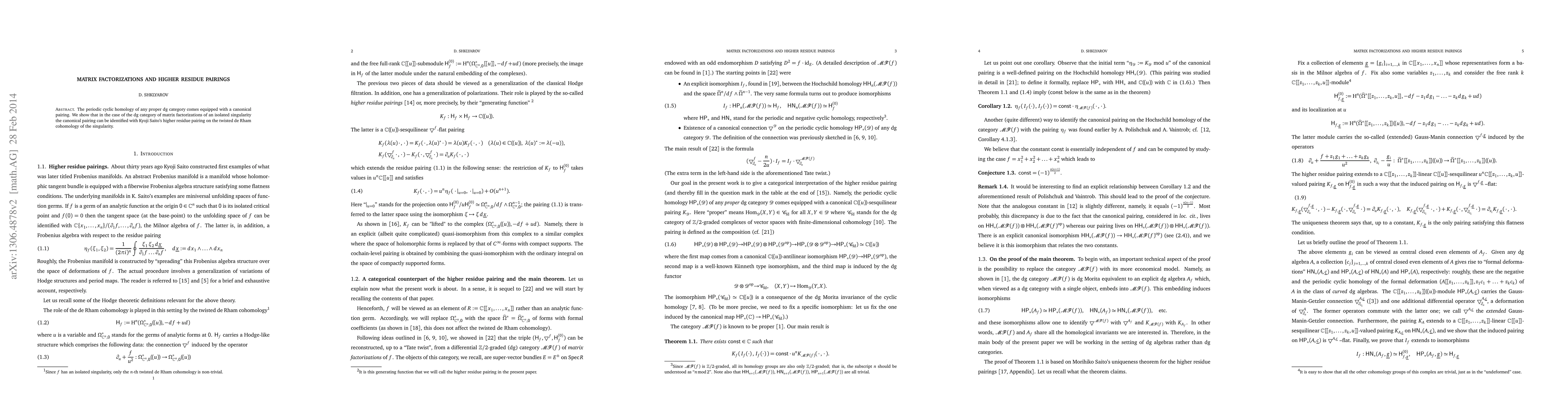 Summary: This paper demonstrates that the periodic cyclic homology of dg categories of matrix factorizations corresponds to higher residue pairings on the twisted de Rham cohomology of isolated singularities, providing a novel identification between these two mathematical constructs.