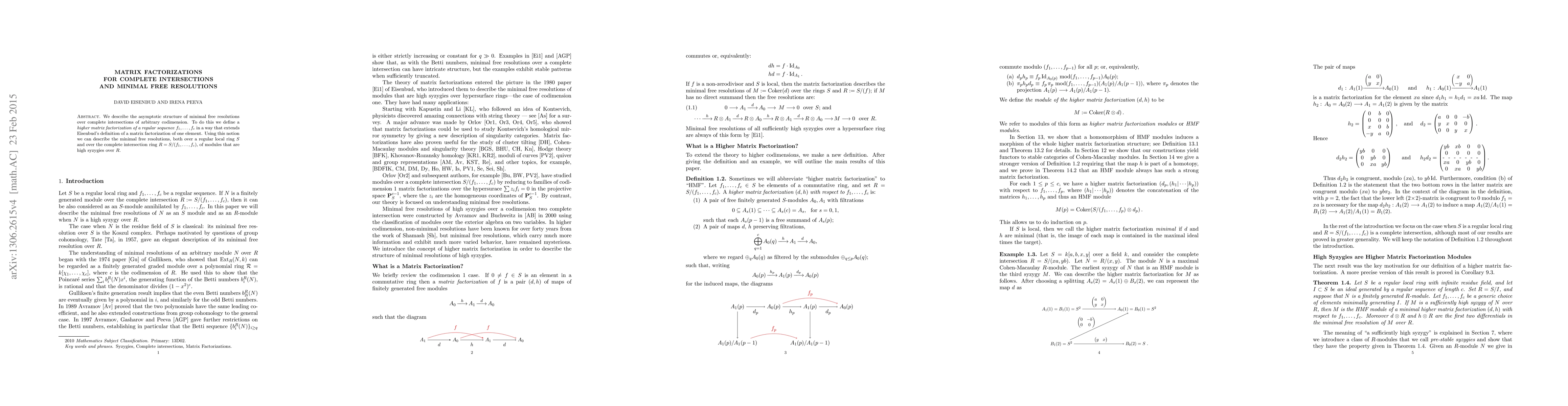 Summary: This paper introduces matrix factorizations for complete intersections to describe the asymptotic structure of minimal free resolutions. It extends the concept from hypersurfaces to more general complete intersections.