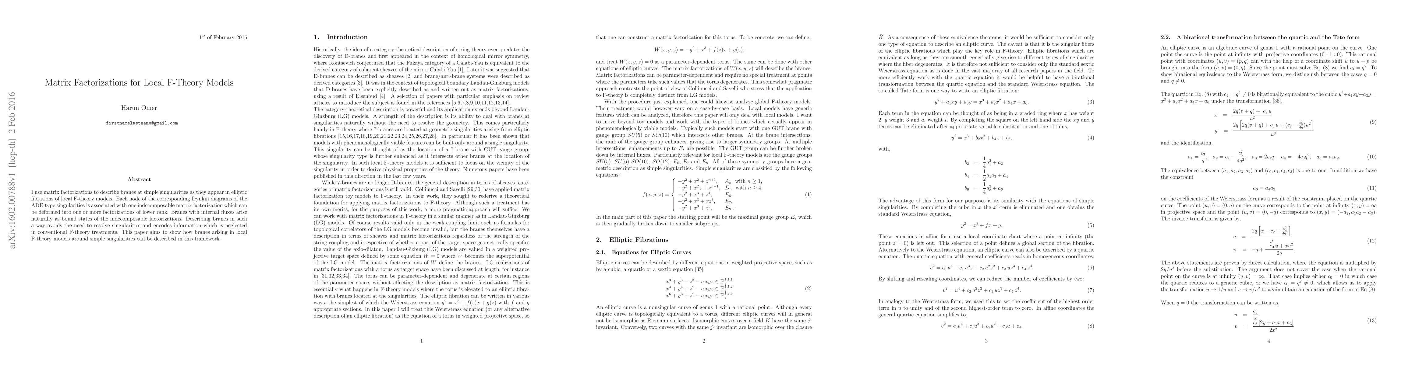 This paper uses matrix factorizations to describe branes at simple singularities in local F-theory models, associating each ADE-type singularity node with an indecomposable factorization. This approach naturally includes branes with internal fluxes and avoids the need for singularity resolution, providing a novel framework for understanding branes in F-theory.