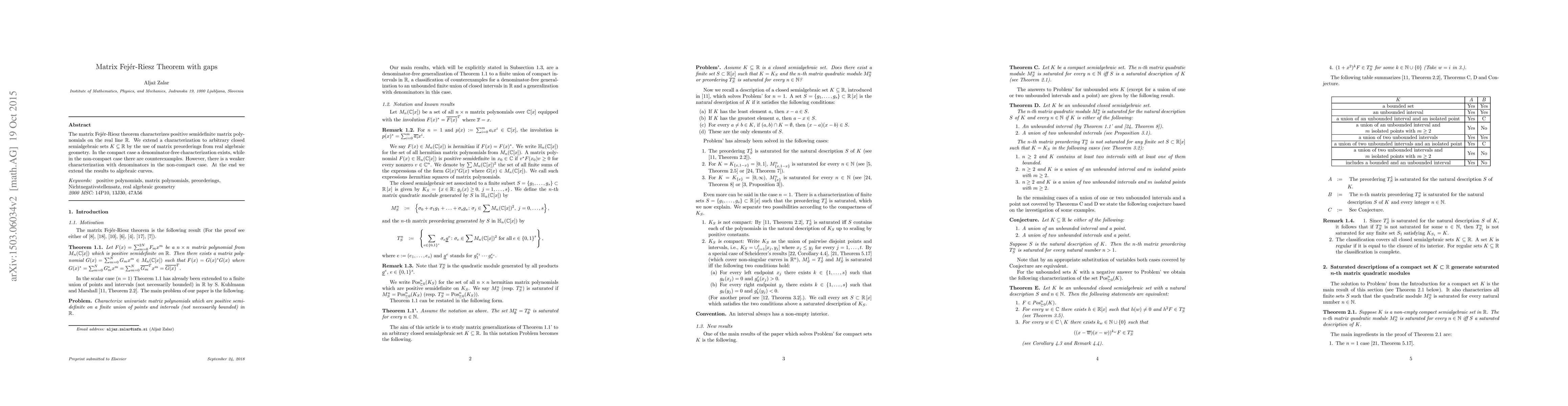 The paper extends the matrix Fej\'er-Riesz theorem to arbitrary closed semialgebraic sets using matrix preorderings from real algebraic geometry, providing characterizations with and without denominators in compact and non-compact cases respectively, and further extending results to algebraic curves.