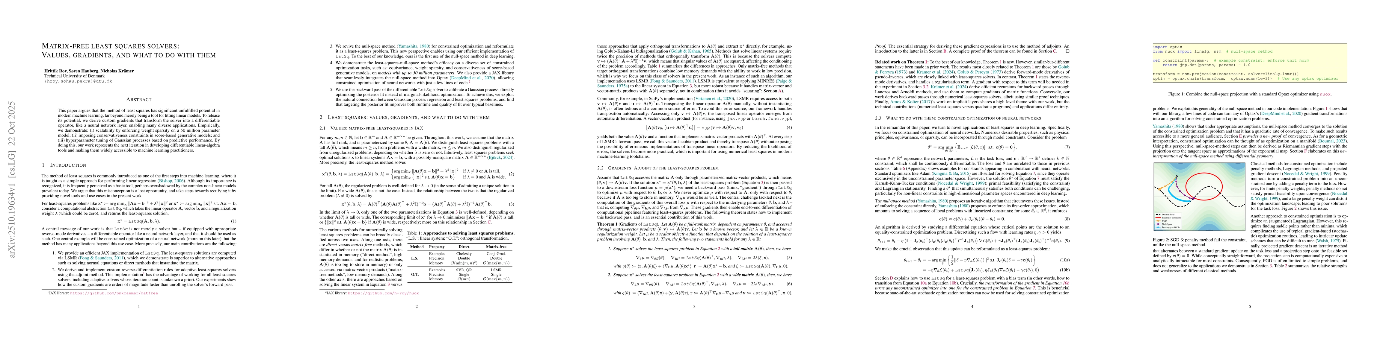 This paper argues that the method of least squares has significant unfulfilled potential in modern machine learning, far beyond merely being a tool for fitting linear models. To release its potential, we derive custom gradients that transform the solver into a differentiable operator, like a neural network layer, enabling many diverse applications. Empirically, we demonstrate: (i) scalability by enforcing weight sparsity on a 50 million parameter model; (ii) imposing conservativeness constraints in score-based generative models; and (iii) hyperparameter tuning of Gaussian processes based on predictive performance. By doing this, our work represents the next iteration in developing differentiable linear-algebra tools and making them widely accessible to machine learning practitioners.