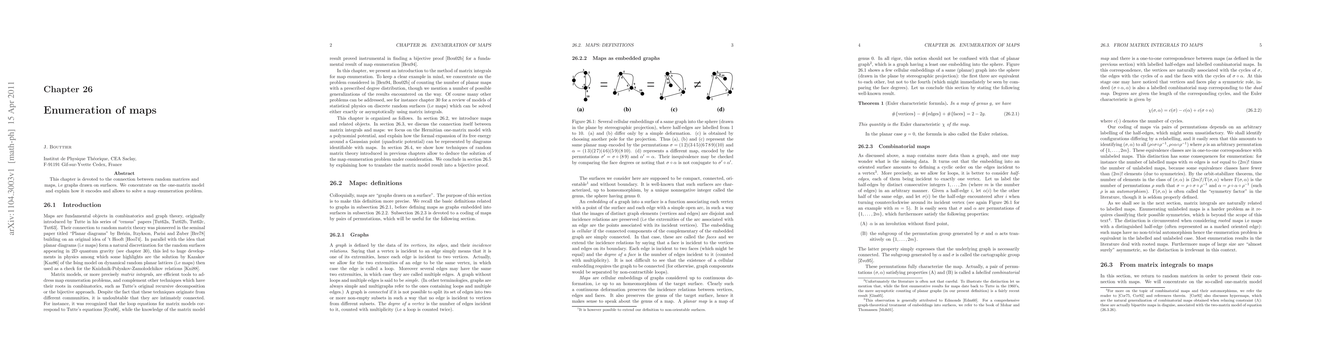 This paper introduces the link between random matrix integrals and the enumeration of maps (graphs on surfaces), focusing on the one-matrix model to solve map enumeration problems. The study highlights the potential of matrix models in combinatorial enumeration.